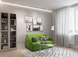 Диван покупала ребёнку в спальню год назад, очень компактный и стильный, спальное место просторное и удобное. Ткань быстро моется и сохнется.
