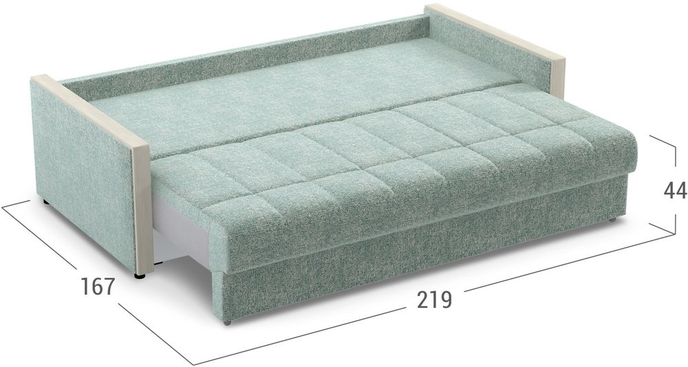 • В разложенном виде модель образует два ровных, цельных спальных места.