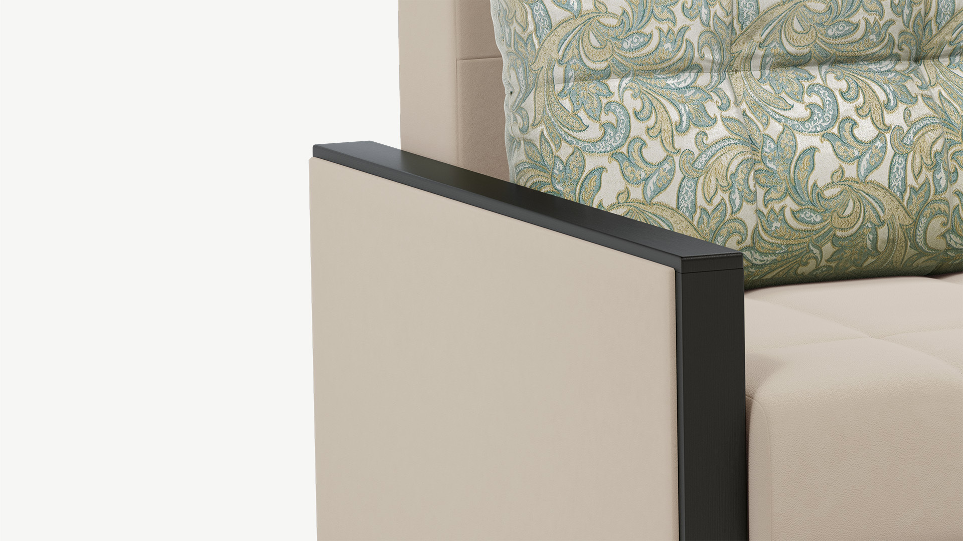 На подлокотники со столешницей Вы всегда сможете поставить чашечку чая. Имитируя фактуру дерева, декоративная накладка здесь буквально обрамляет подлокотники дивана, становясь стильным и практичным решением.