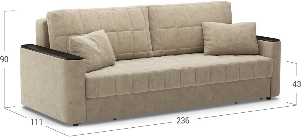 На диване можно комфортно спать, не разбирая его. В разложенном виде диван образует просторное спальное место.