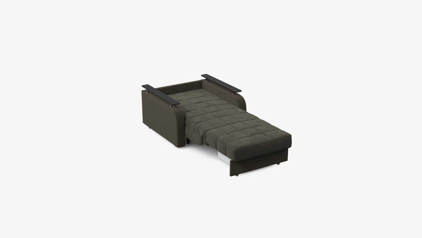 Кресло-кровать MOON FAMILY 044 украшено уютной стежкой в квадрат. Гладкая фактура подлокотников и стежка — эффектный визуальный контраст, добавляющий дизайну привлекательности. Проверенный временем дизайн с приподнятой над уровнем подлокотников столешницей создает пространство, в котором хочется проводить как можно больше времени.