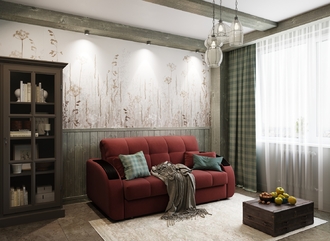 Спинка, выполненная в обивочной ткани, позволяет ставить диван в центре комнаты и зонировать пространство.