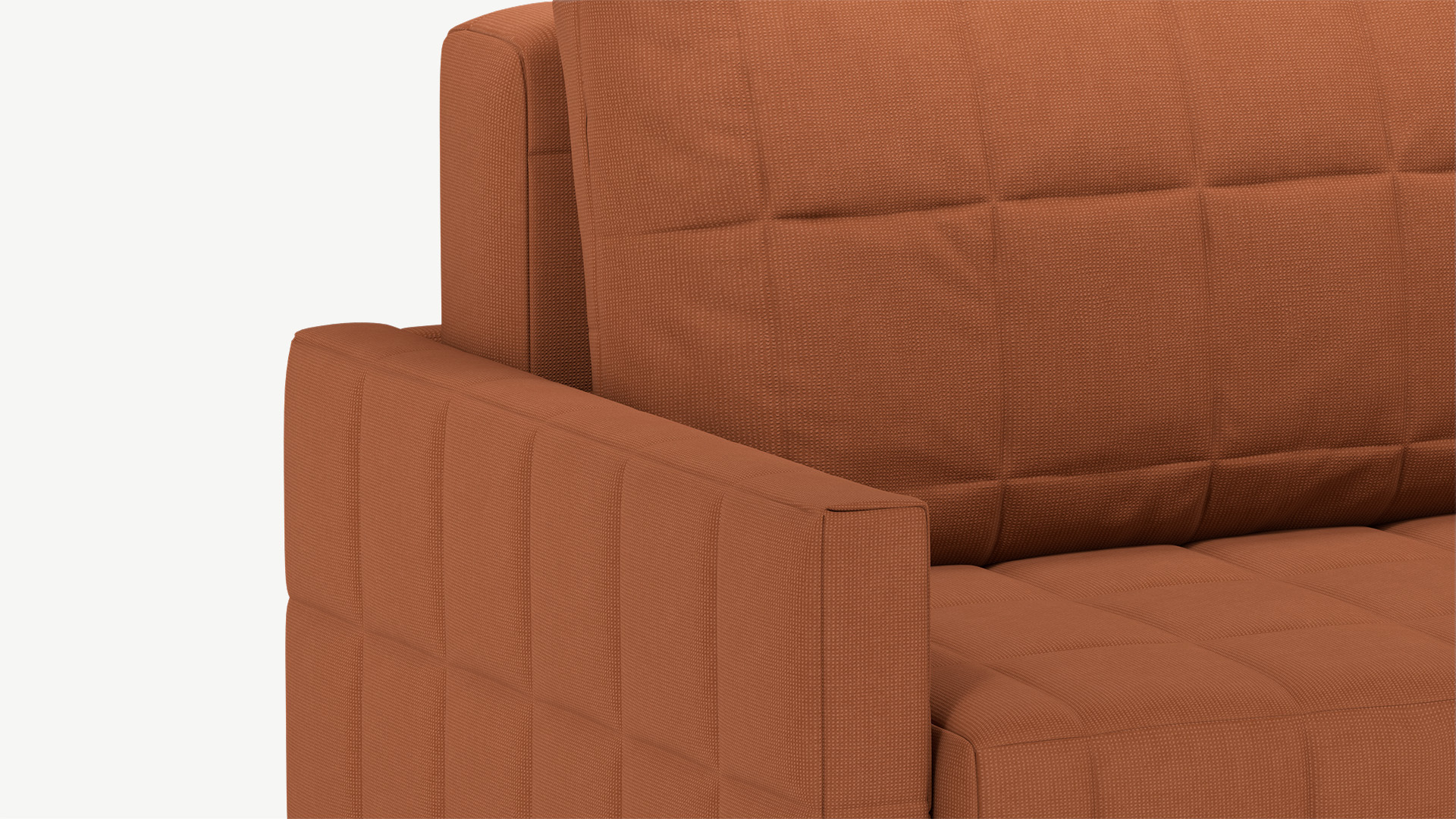ДиванДиван MOON FAMILY 124 удачно сочетает вполне традиционный образ с веяниями моды. Так, простые лаконичные формы и стежка в квадрат, использованная для всей поверхности дивана, создают образ привычный и уютный, а вот мягкие подлокотники и приспинные подушки без утяжки — дань современным тенденциям.