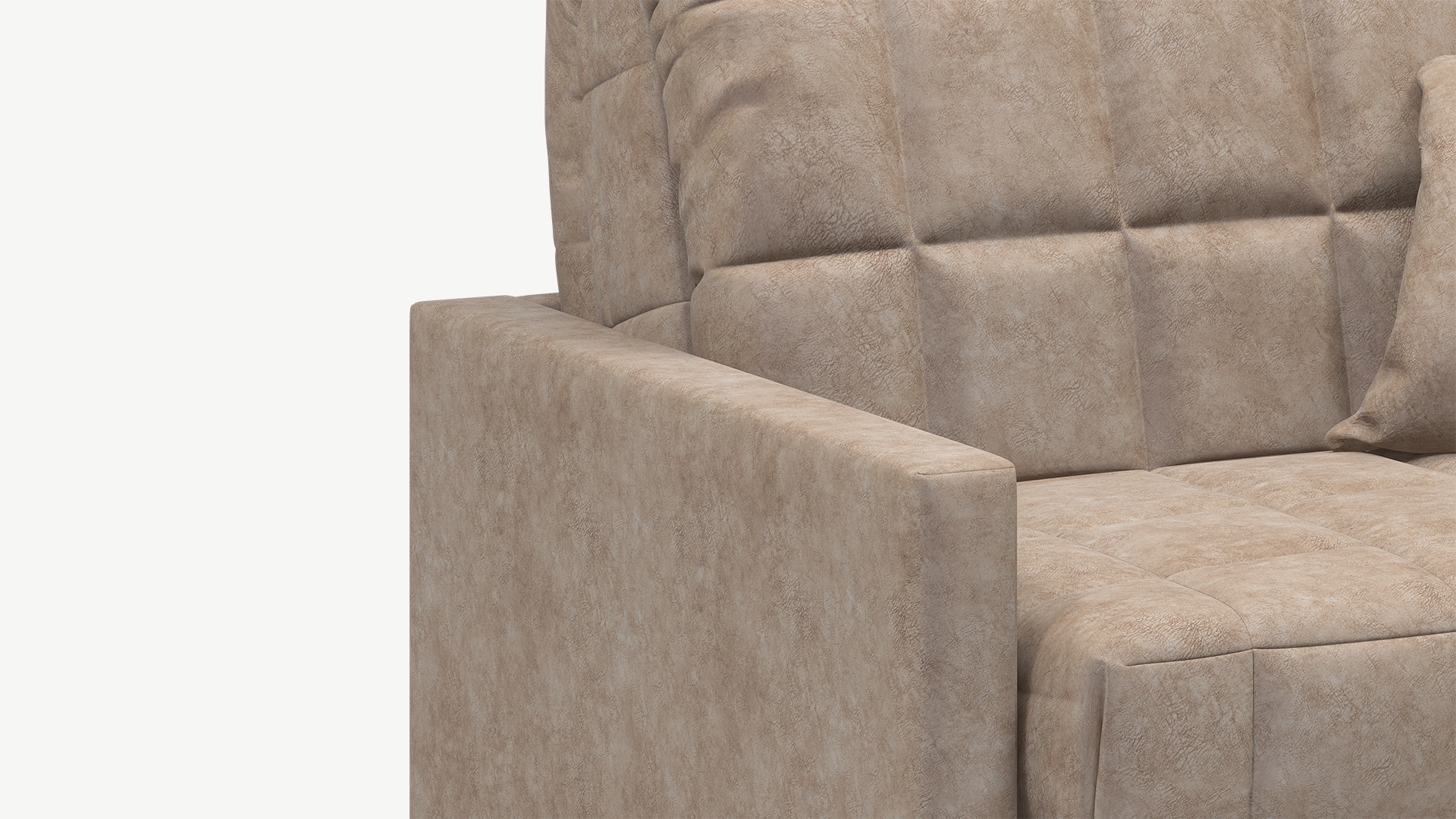 Кресло-кровать MOON FAMILY 134 украшено уютной стежкой в квадрат. Гладкая фактура подлокотников и стежка — эффектный визуальный контраст, добавляющий дизайну привлекательности.