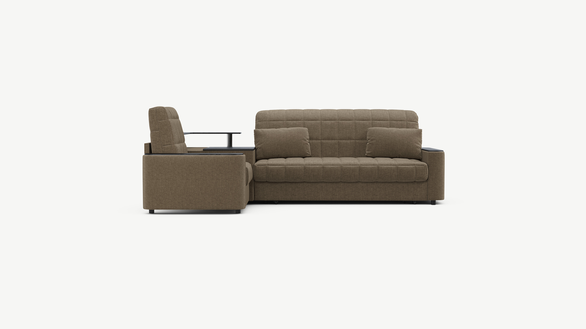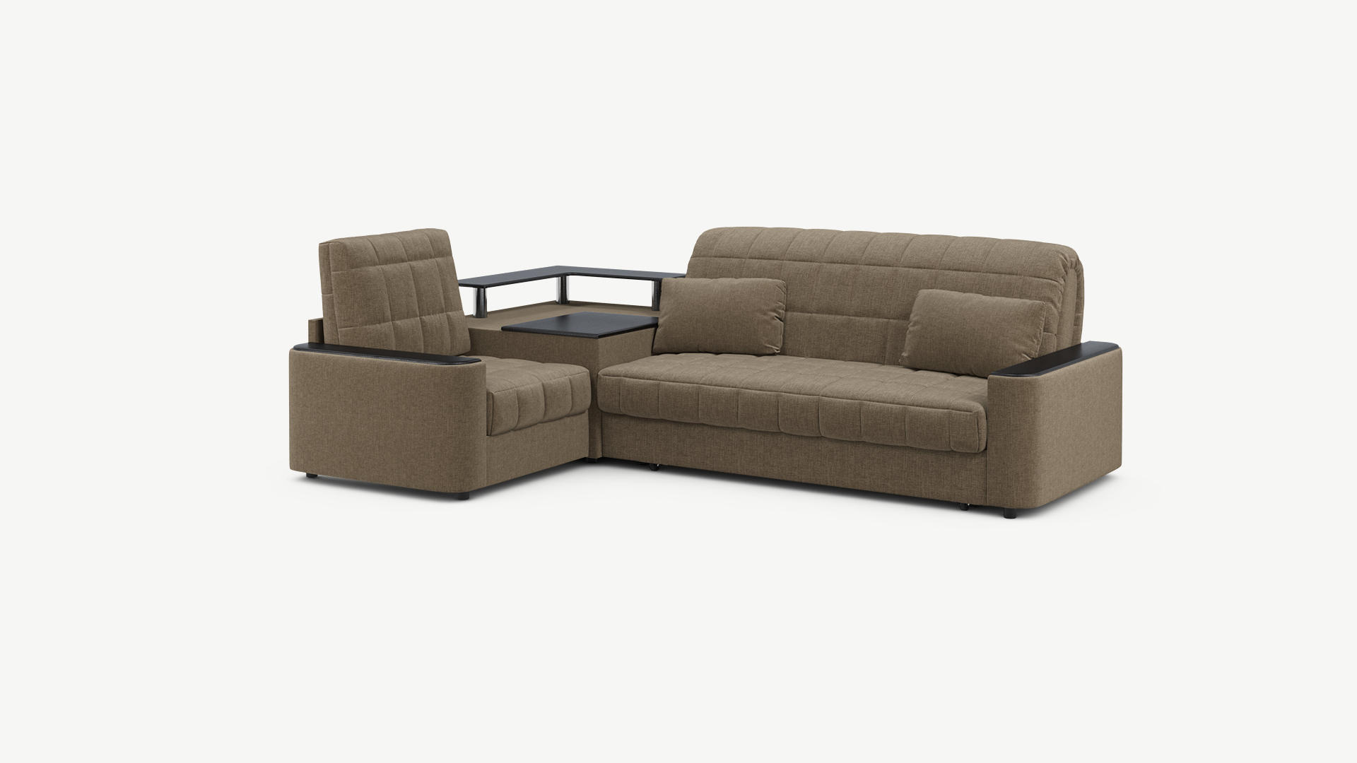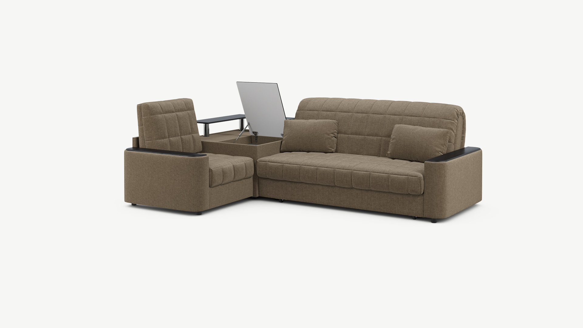 Выбирая угловой диван со столиком, Вы сможете проводить время с максимальным комфортом, многократно повысив функциональность дивана. Все дело в том, что под столешницей модуля расположена вместительная емкость для хранения. Кроме того, поверхность столика — идеальное пространство для чаепития в приятной компании, а также место для множества актуальных мелочей — от ноутбука до косметики.