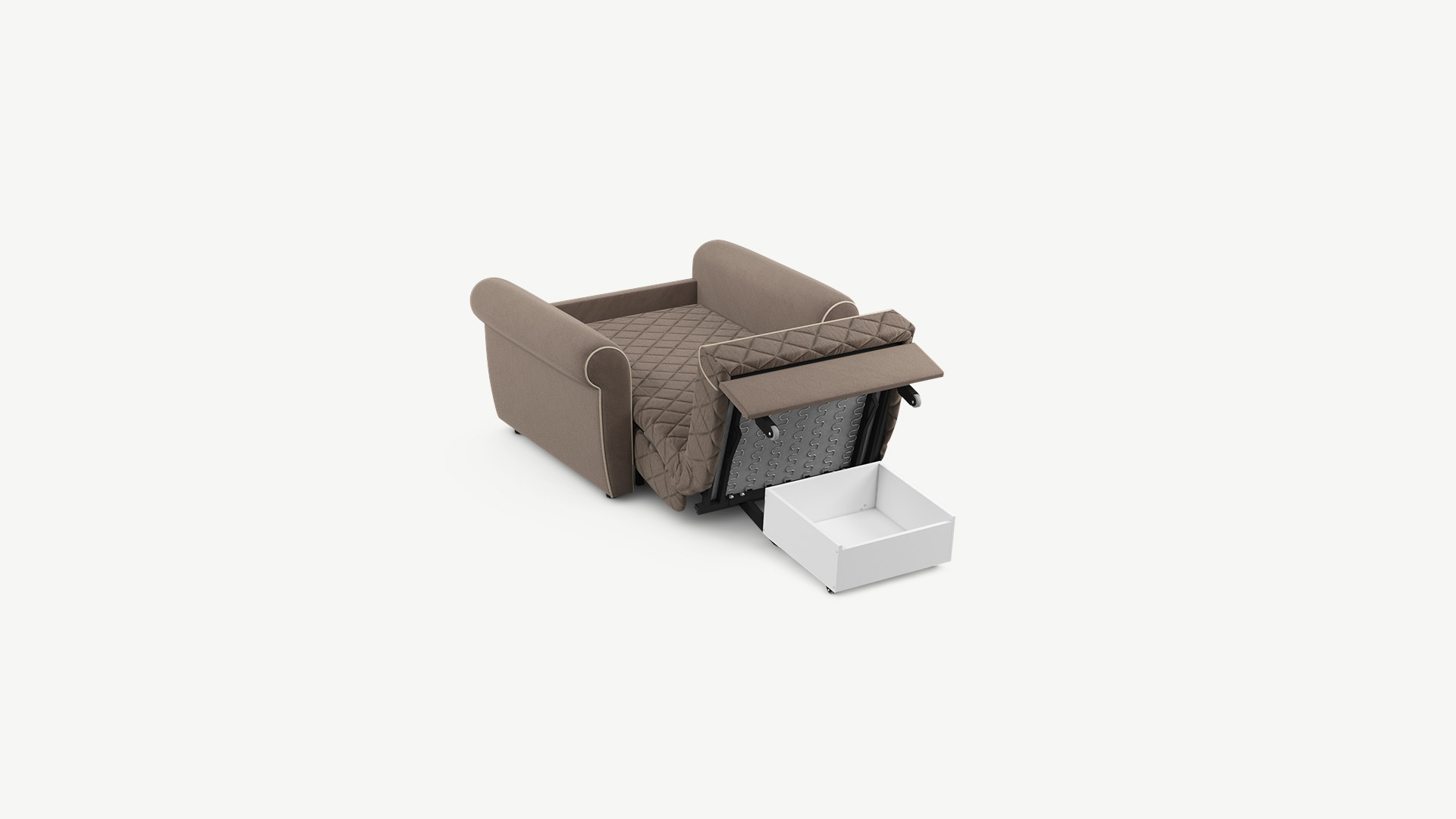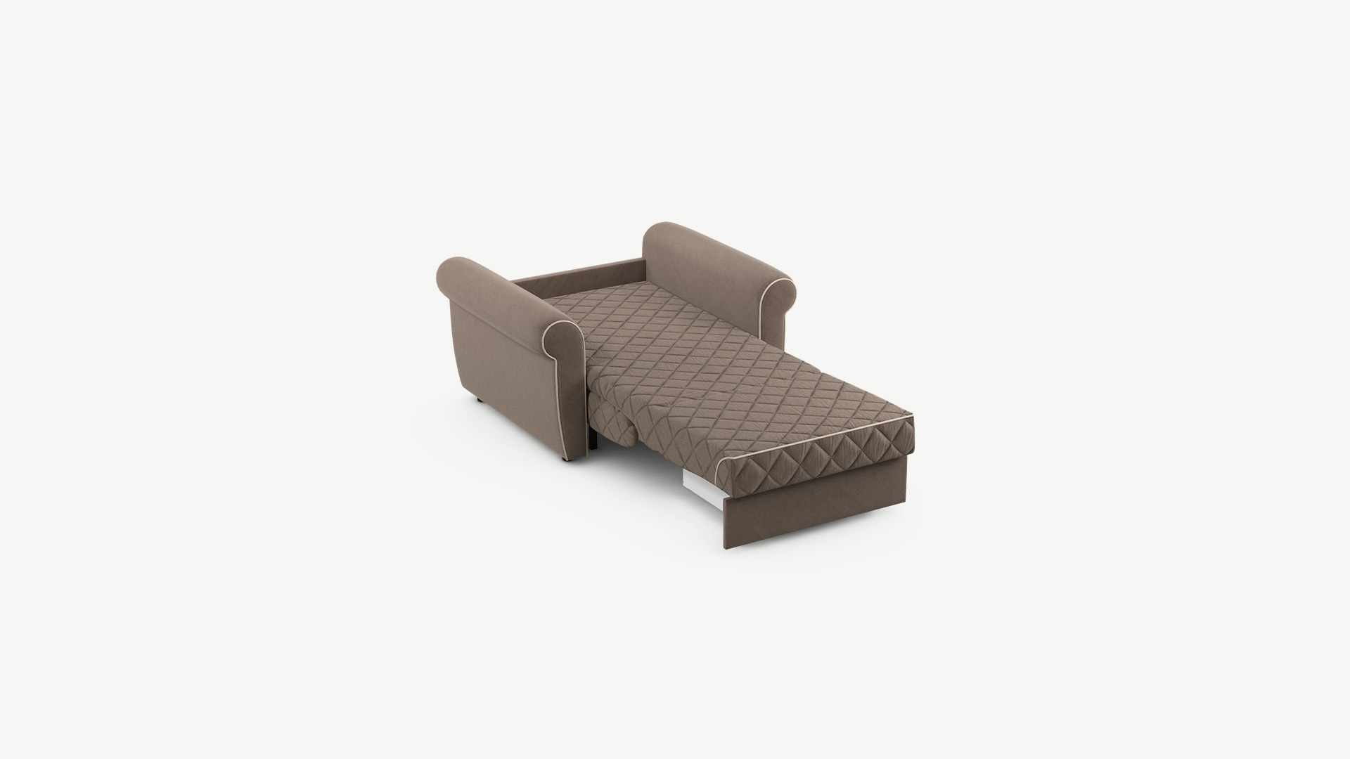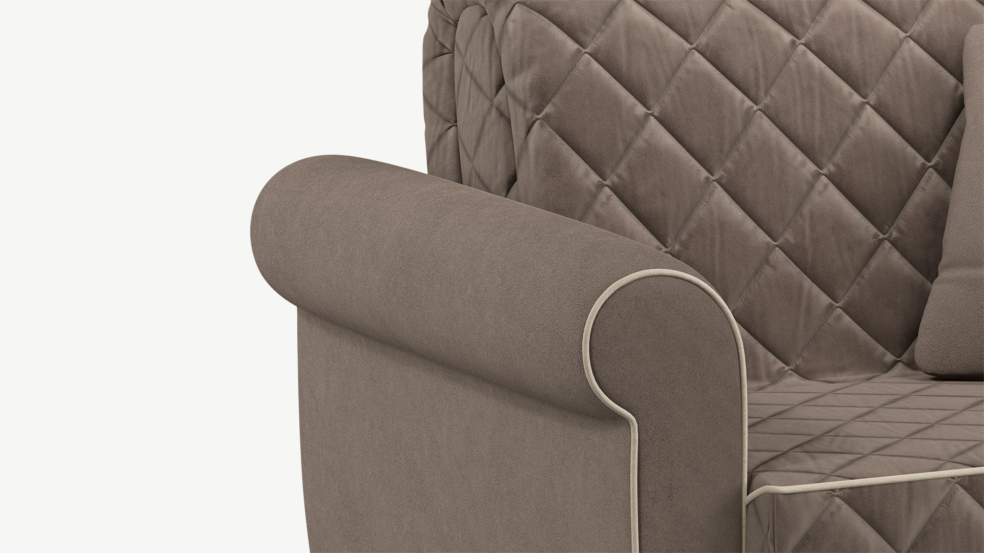 Дизайн MOON FAMILY 123 с винтажной формой подлокотников настраивает на звучание классики. Стежка в ромб добавляет образу кресла-кровати динамики, делая его более уютным и современным.