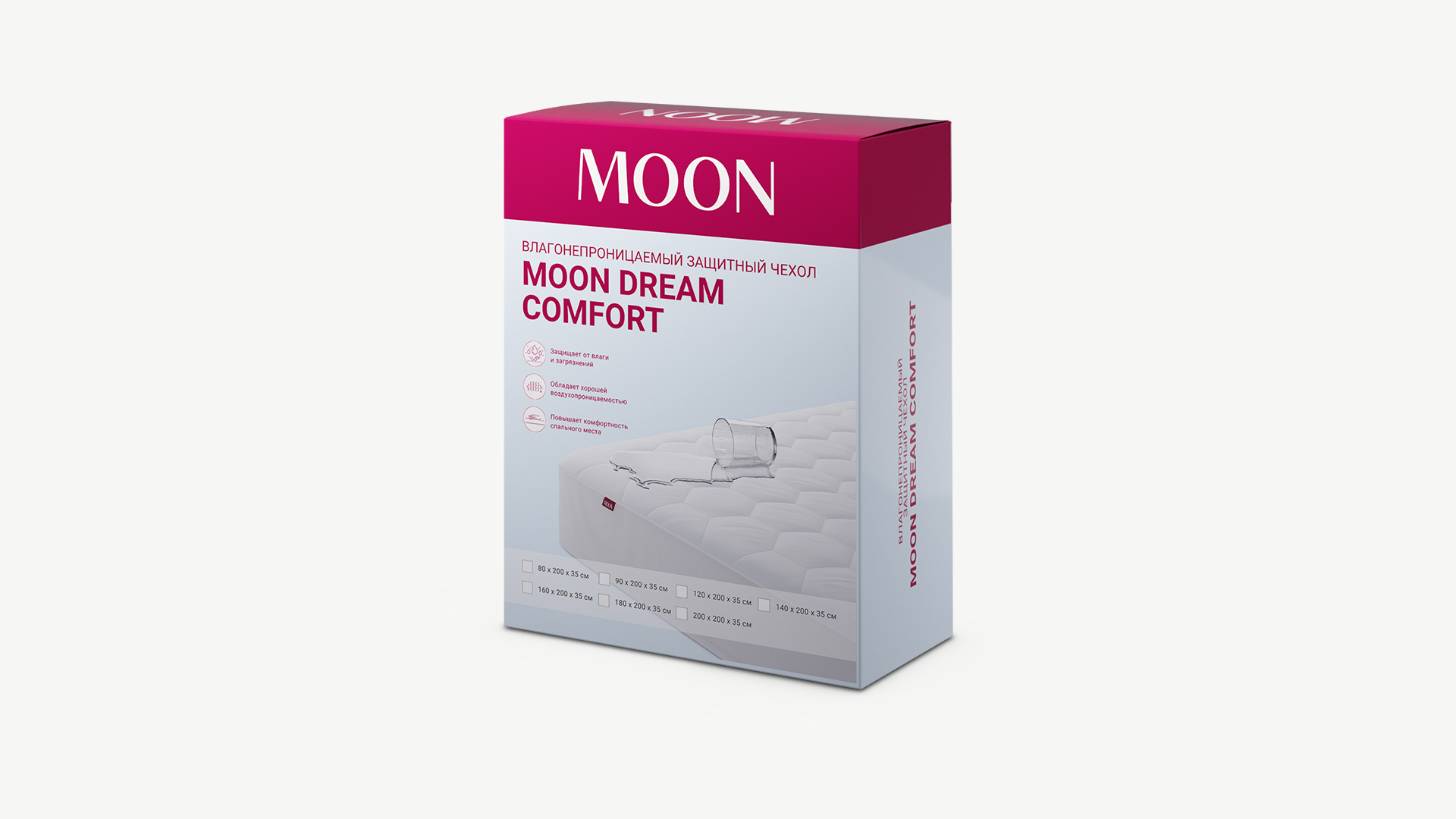 Чехол MOON DREAM COMFORT создан для поддержания гигиены спального места. Защищает матрас от влаги, загрязнений и пятен различного происхождения.