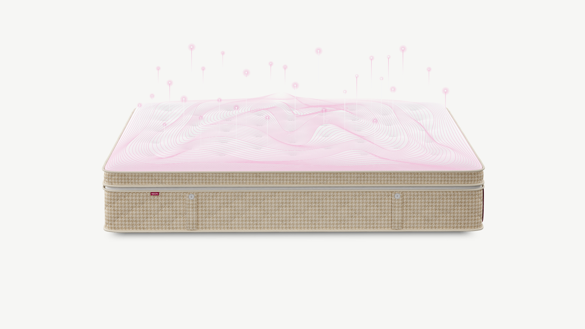 • Слой с инфракрасной технологией Vitalize поглощает тепло тела человека и направляет его на поддержание оптимальной температуры спального места.