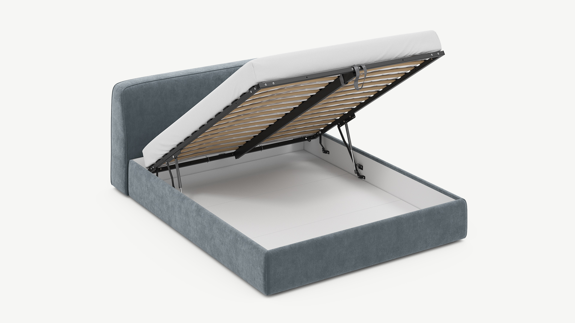 - Скрытая под основанием вместительная емкость без внутренних перегородок позволяет использовать всю площадь подкроватного пространства для хранения вещей.