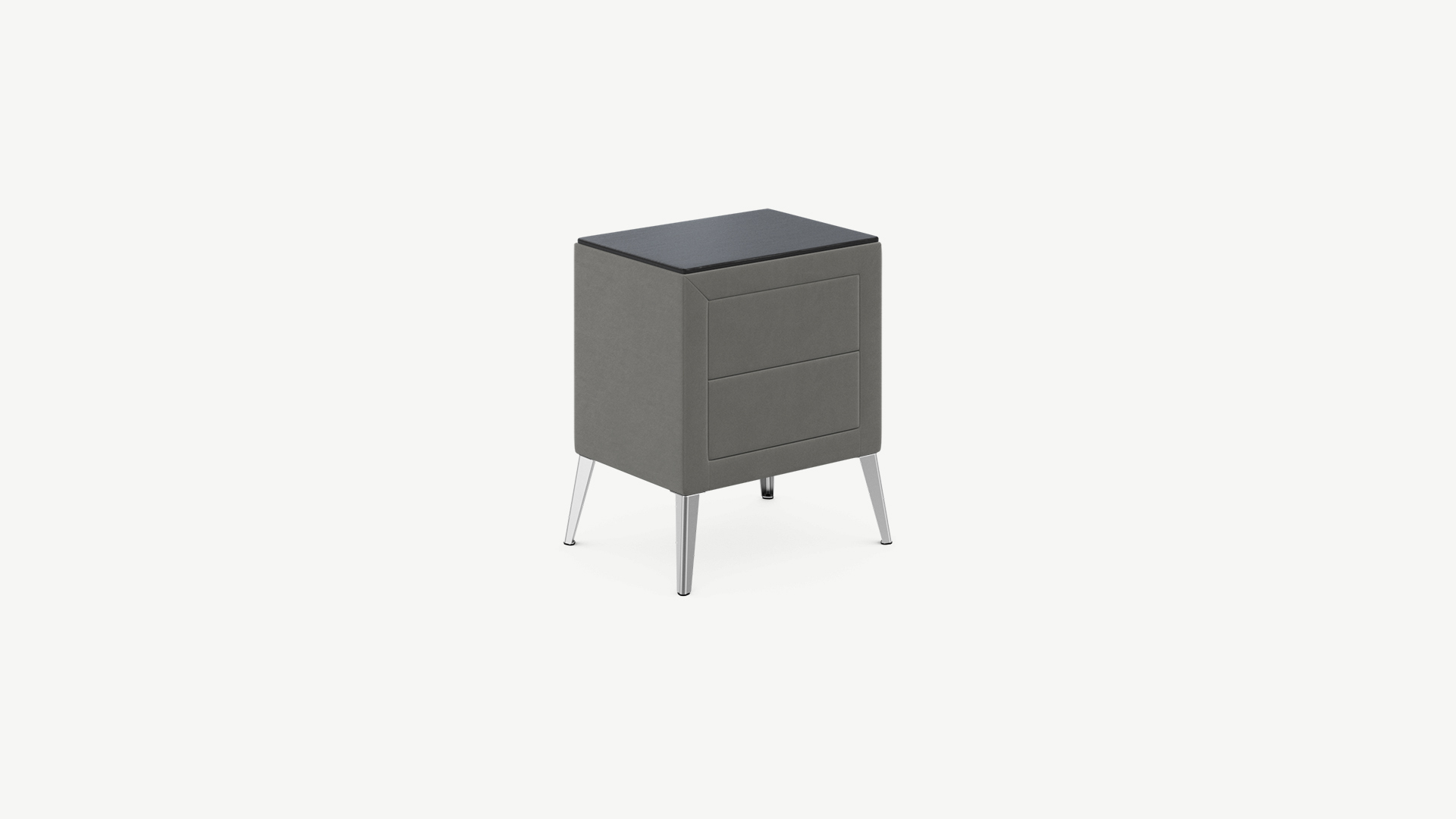 Тумба прикроватнаяМягкий притягательный шарм тумбы MOON FAMILY 1010 — результат сразу нескольких удачных решений. Обитая тактильно приятной мебельной тканью, она деликатно поддерживает настроение спальни, создавая атмосферу гармонии и уюта. Современная система доступа к содержимому Push-to-open позволяет открывать ящик легким нажатием на панель — Вы получаете стильный, абсолютно лаконичный Дизайн, реализованный благодаря отсутствию традиционных ручек!