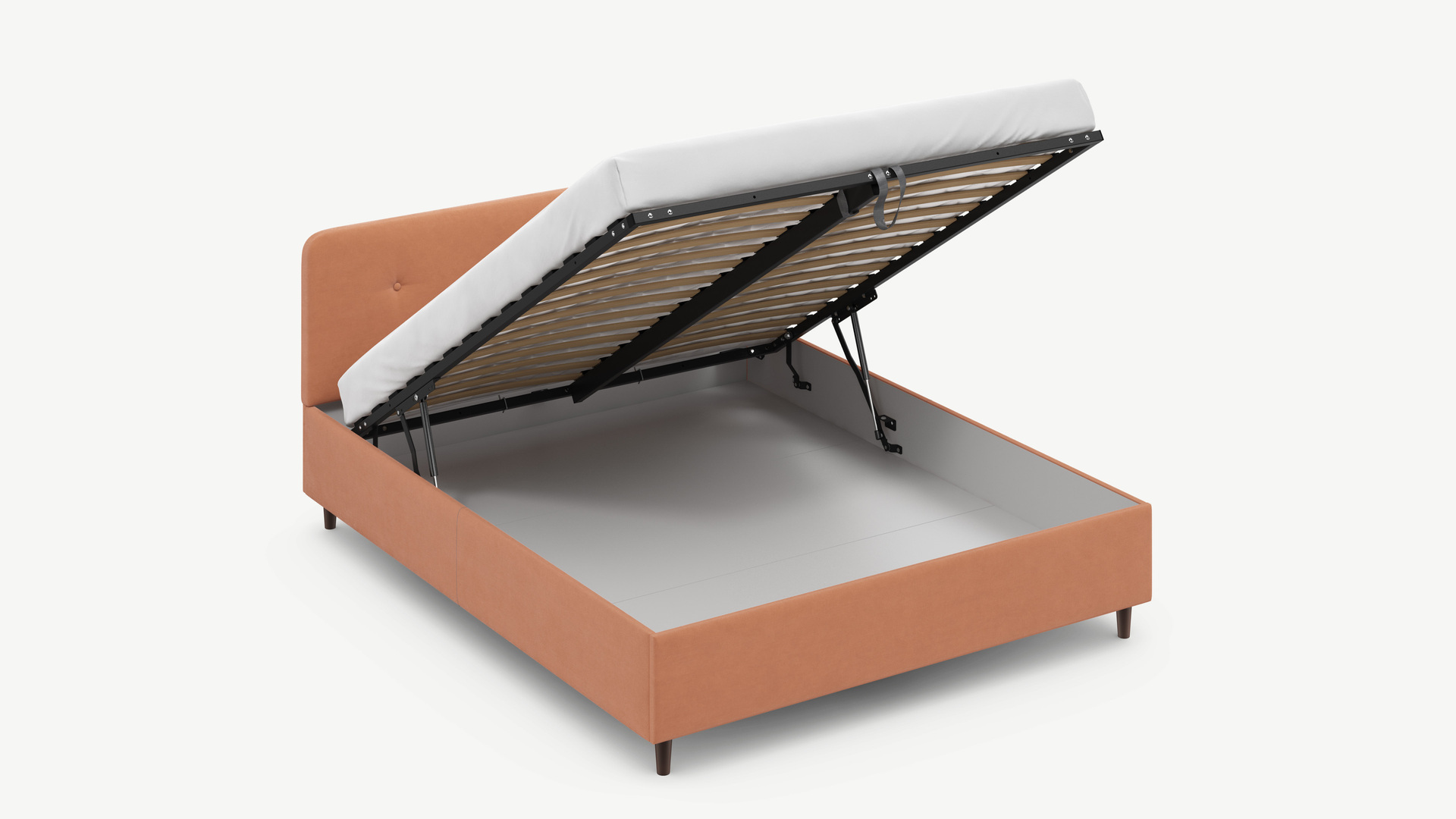 - Скрытая под основанием вместительная емкость без внутренних перегородок позволяет использовать всю площадь подкроватного пространства для хранения вещей.