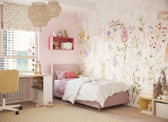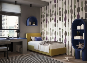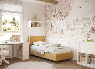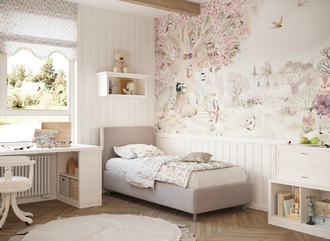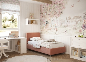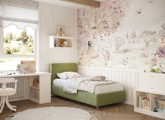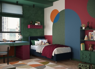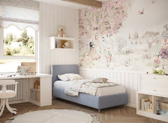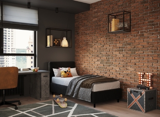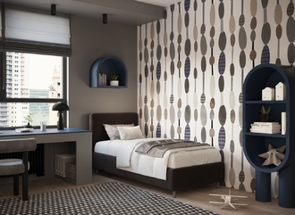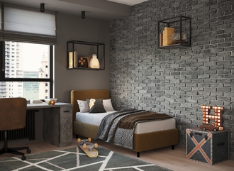 Обратная сторона изголовья выполнена в мебельной ткани и позволяет ставить кровать в центре комнаты для зонирования пространства.