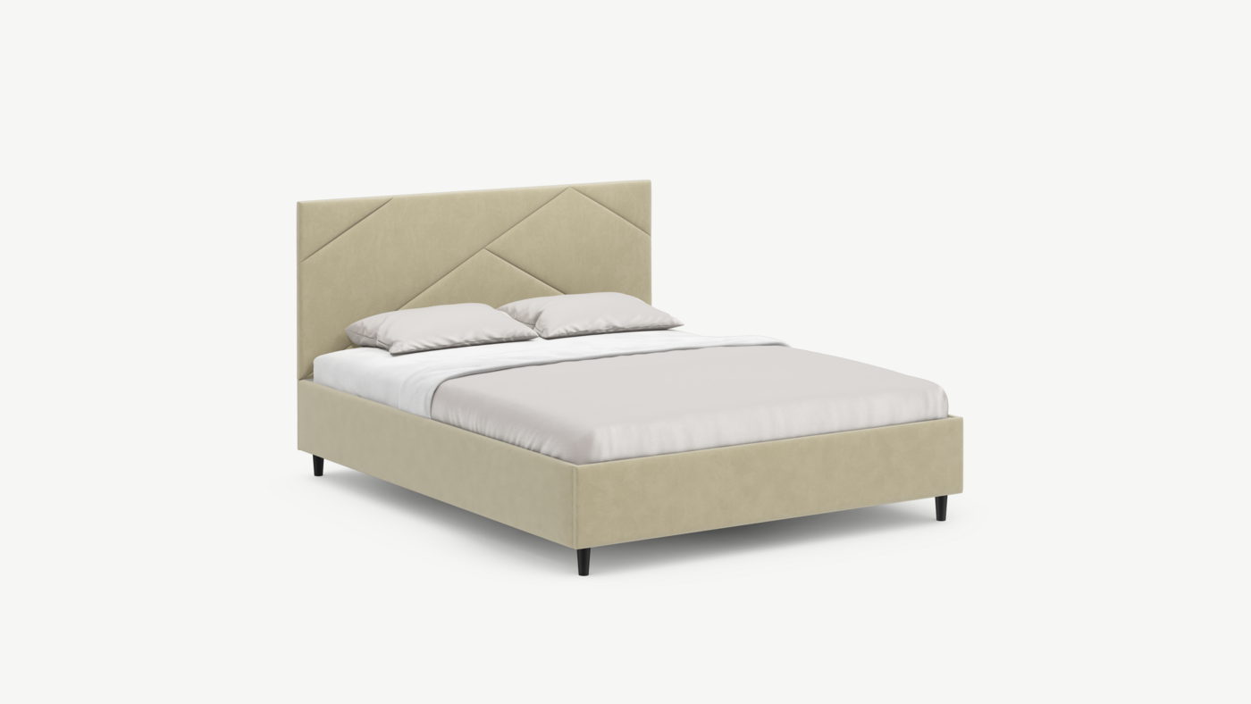 MOON FAMILY 1257 привлекает внимание оригинальным исполнением: широкие полосы ткани эффектно пересекают периметр изголовья, создавая на нем графический орнамент. Лаконичные формы объемных царг создают единый гармоничный образ и фокусируют внимание на центральном текстурном элементе кровати.