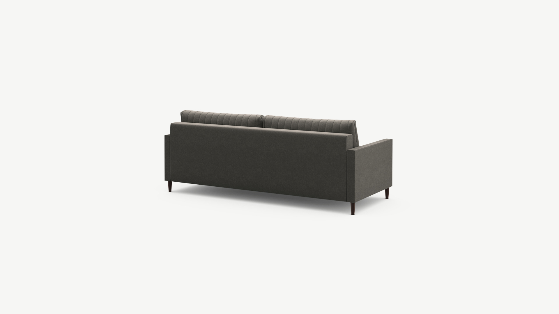 Красивый вид дивана со всех сторон. Спинка дивана, полностью облицованная обивочным материалом, придает изделию эстетичный внешний вид, завершает его образ и позволяет ставить диван в центре комнаты и/или зонировать пространство.