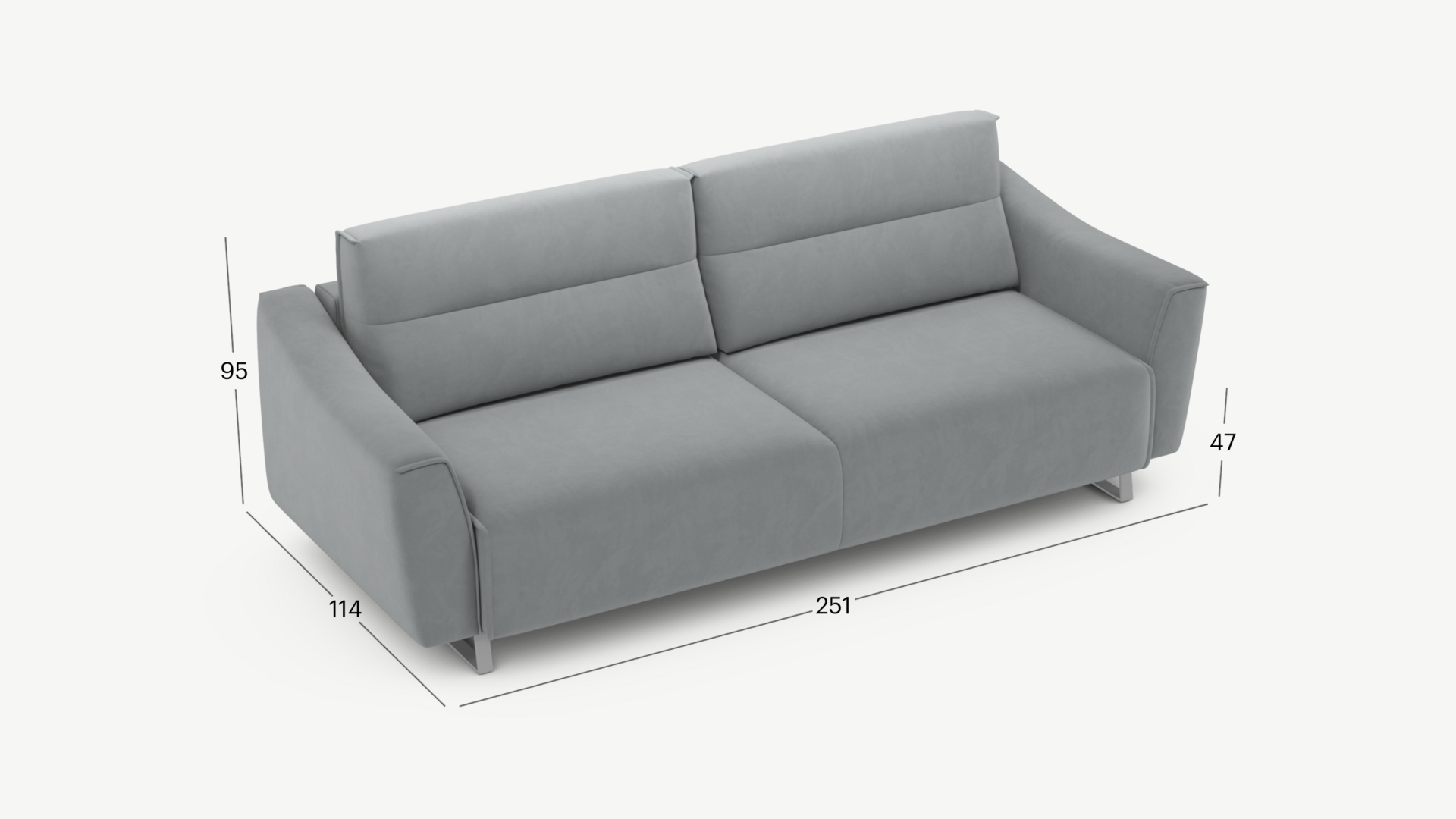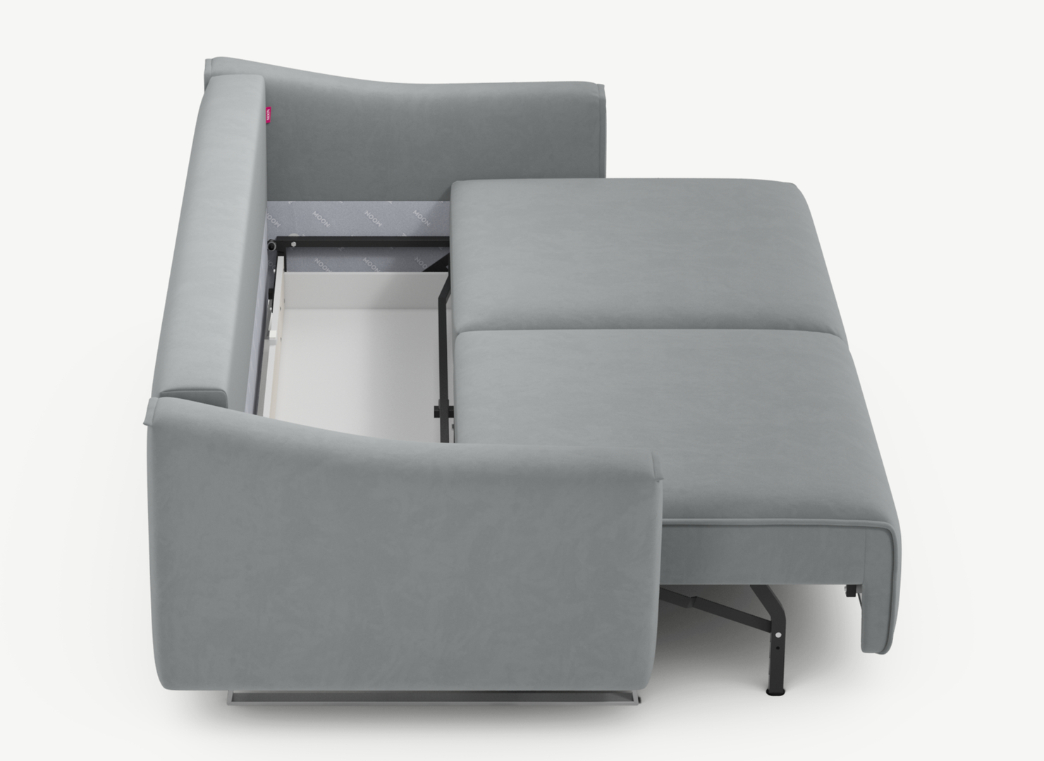 Механизм трансформации «Пантограф» подходит для ежедневного использования. Позволяет легко раскладывать и складывать диван, обеспечивая минимальный контакт дополнительных опор с напольным покрытием. Диван стоит на трапециевидных опорах, в то время как дополнительные остаются скрытыми, появляясь плавно и бесшумно в единственно нужный момент — при трансформации дивана в кровать.