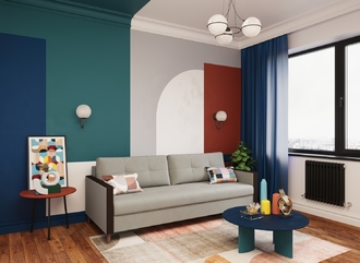 Спинка, выполненная в обивочной ткани, позволяет ставить диван в центре комнаты и зонировать пространство.