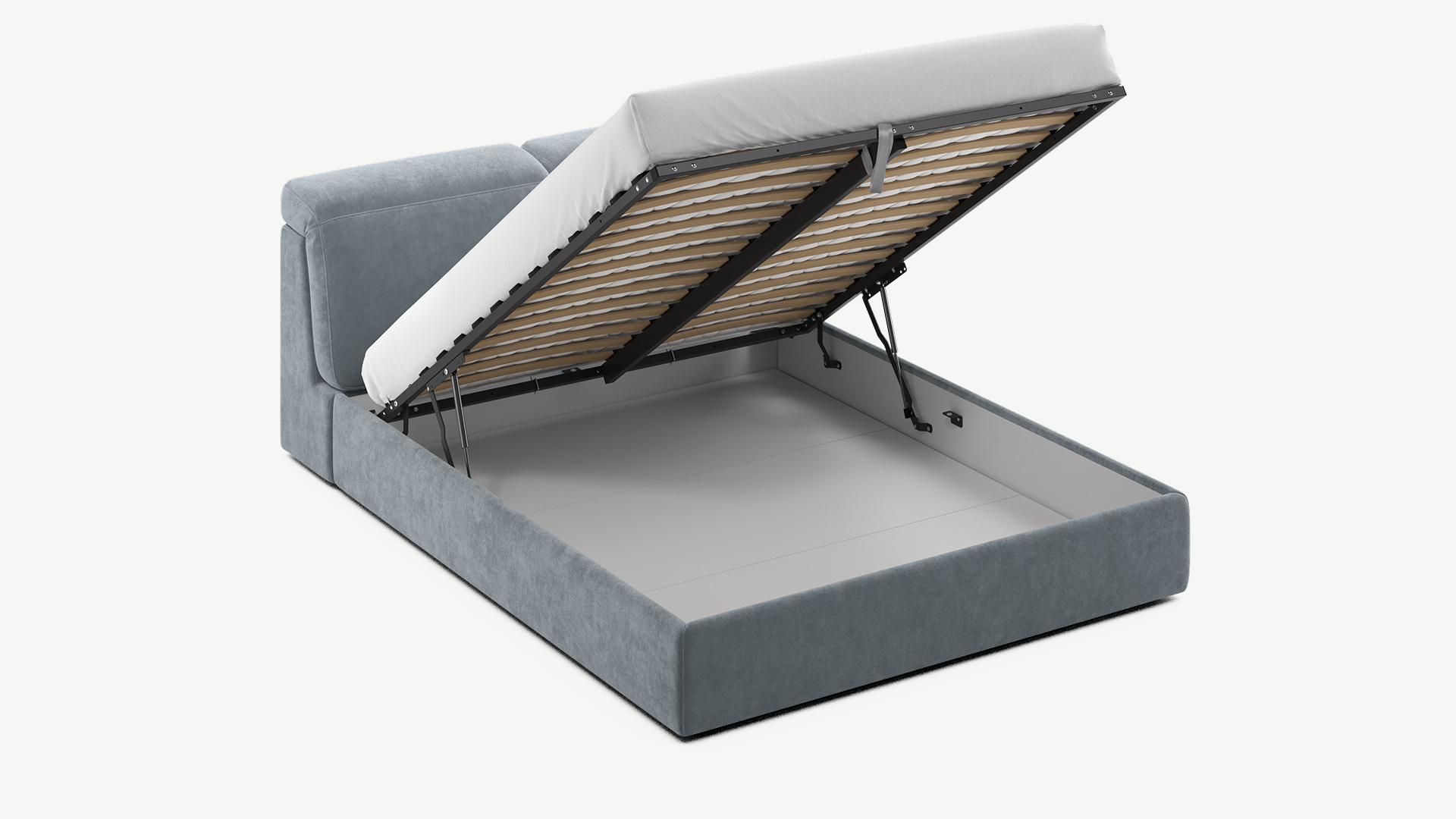 • Скрытая под основанием вместительная емкость без внутренних перегородок позволяет использовать всю площадь подкроватного пространства для хранения вещей.