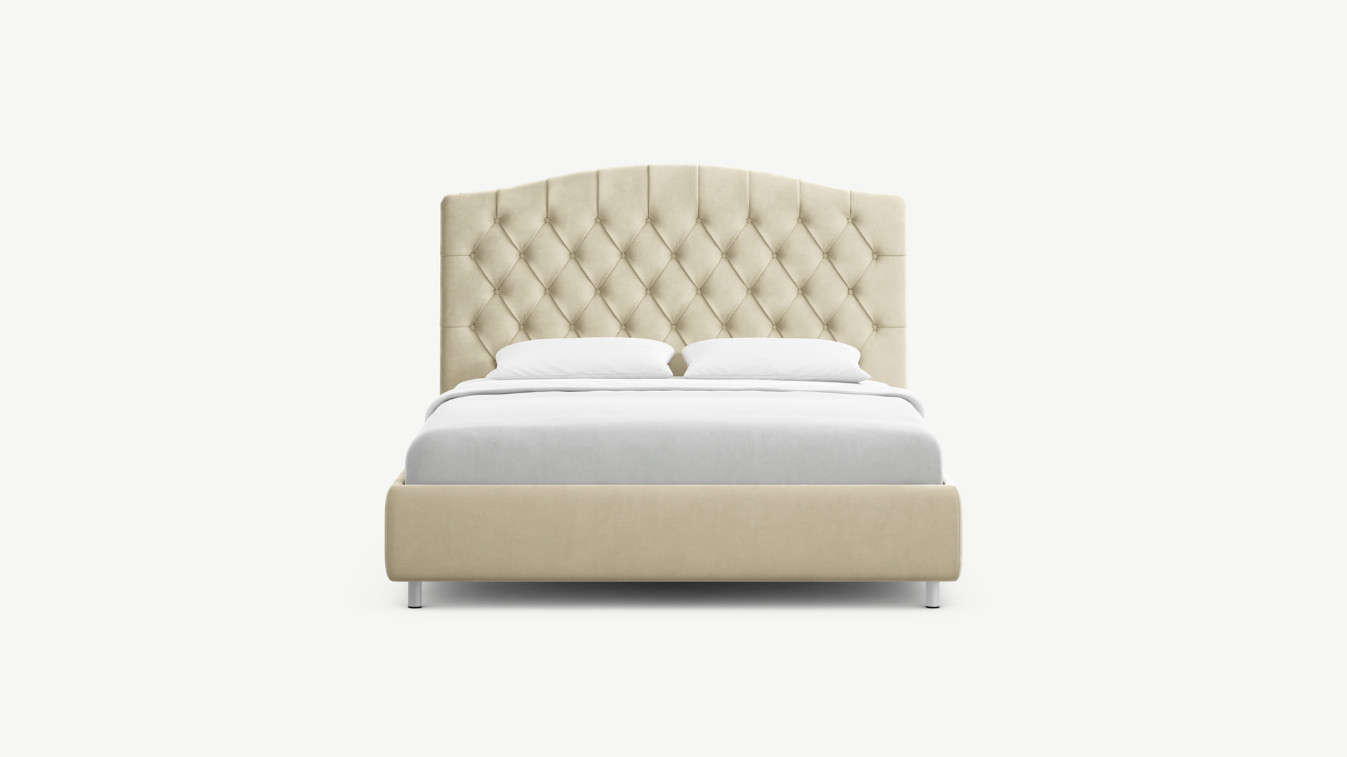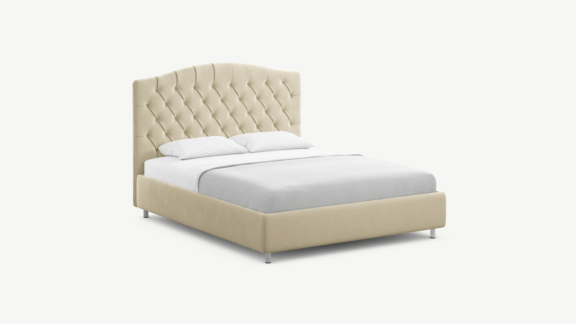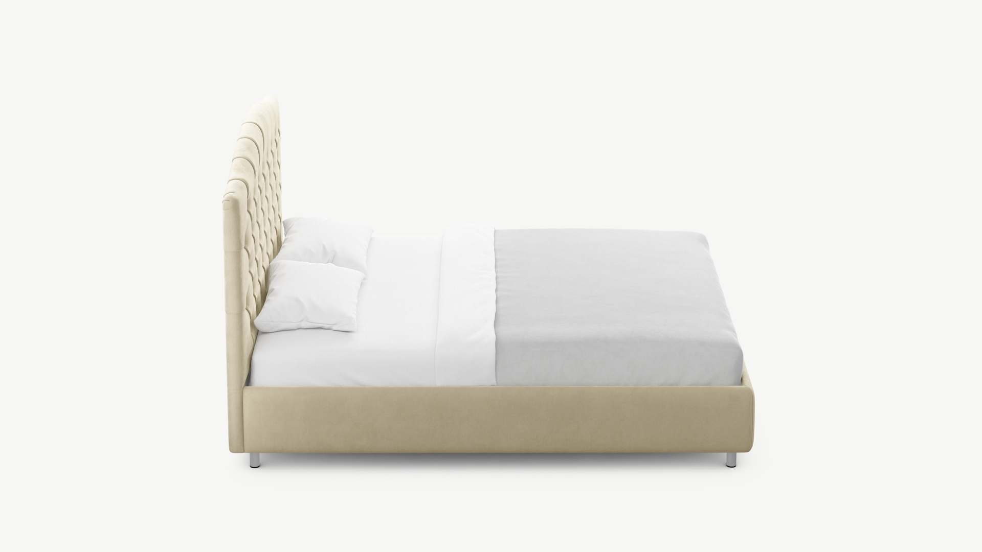 Кровать MOON 1157 создает ощущение праздника. Фигурное изголовье с классической каретной стяжкой формирует торжественный образ кровати, привнося в интерьер элементы дворцового стиля и роскоши.