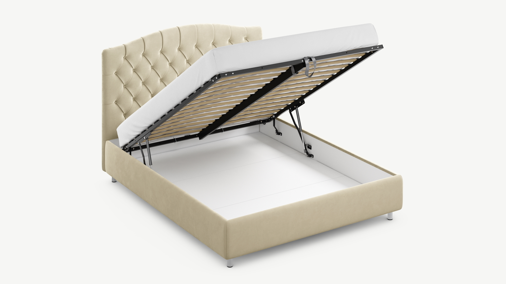 - Скрытая под основанием вместительная емкость без внутренних перегородок позволяет использовать всю площадь подкроватного пространства для хранения вещей.