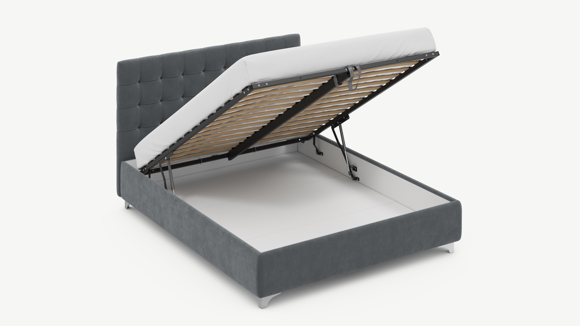 - Скрытая под основанием вместительная емкость без внутренних перегородок позволяет использовать всю площадь подкроватного пространства для хранения вещей.