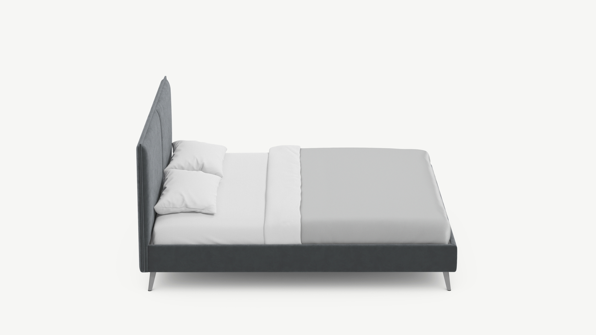 Кровать MOON 1171 привлекает внимание лаконичным дизайном и изяществом высоких наклонных опор. Кант, ограняющий изголовье, подчеркивает эстетику строгих форм и задает интерьеру стильное звучание.