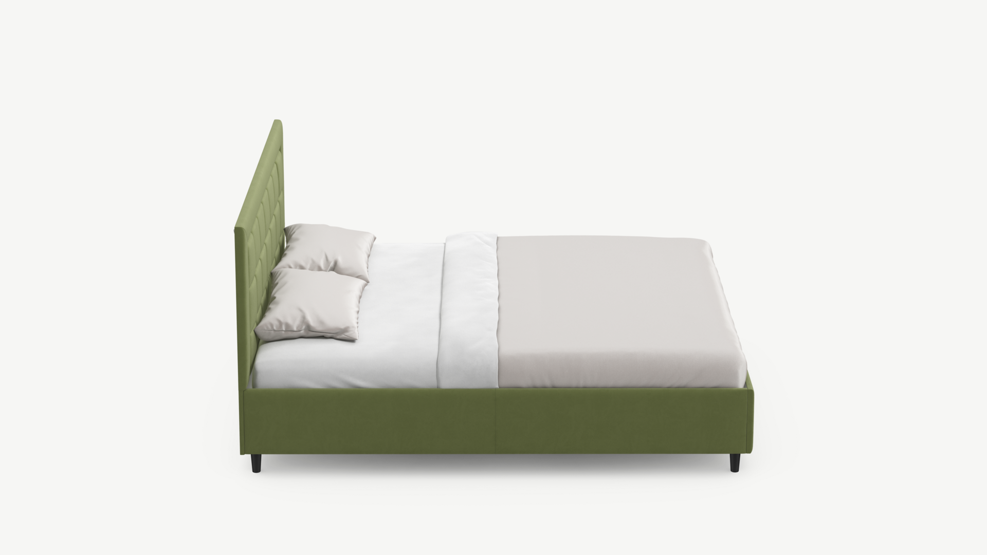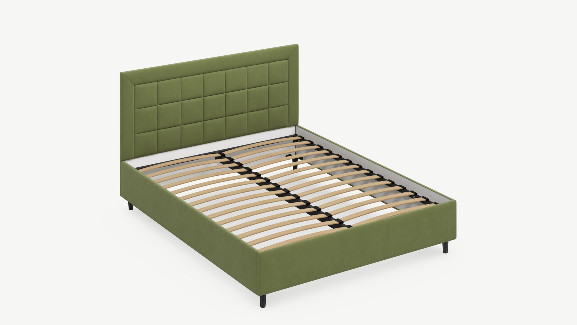 Рама, изголовье и царги надежно крепятся между собой, обеспечивая прочность и устойчивость кровати.