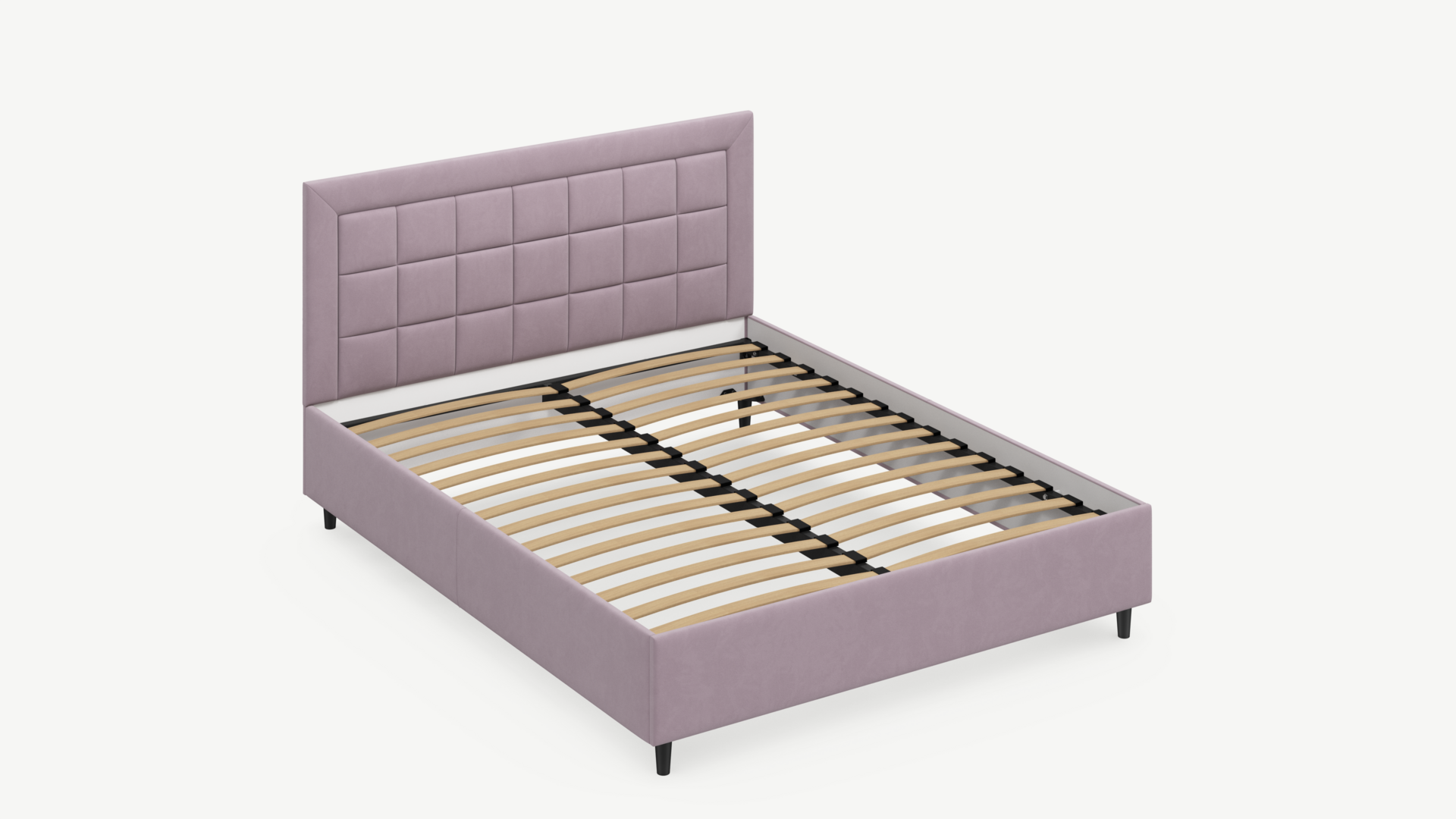 Рама, изголовье и царги надежно крепятся между собой, обеспечивая прочность и устойчивость кровати.