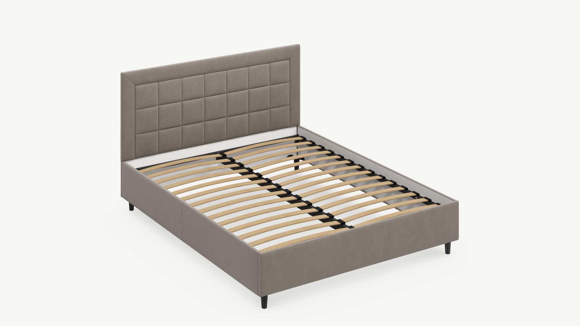 Рама, изголовье и царги надежно крепятся между собой, обеспечивая прочность и устойчивость кровати.