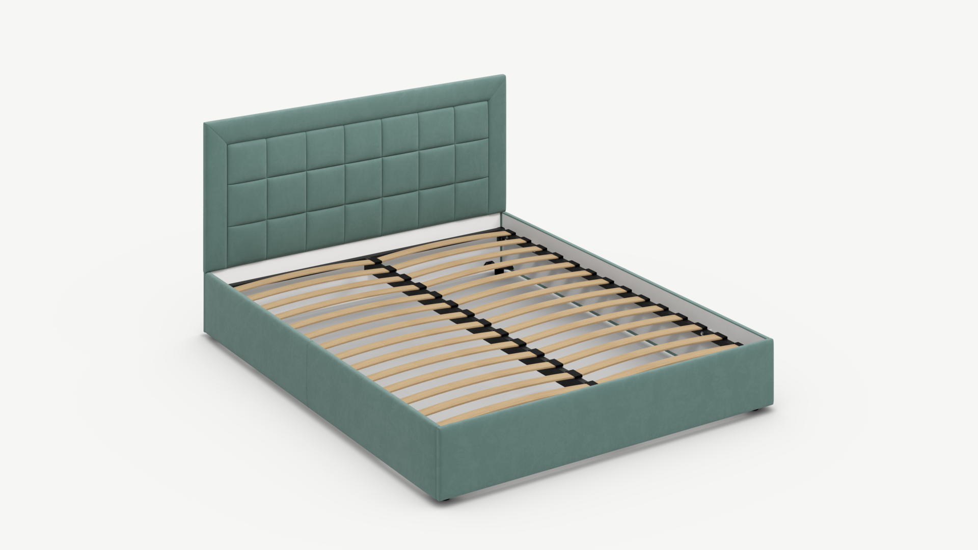 Рама, изголовье и царги надежно крепятся между собой, обеспечивая прочность и устойчивость кровати.