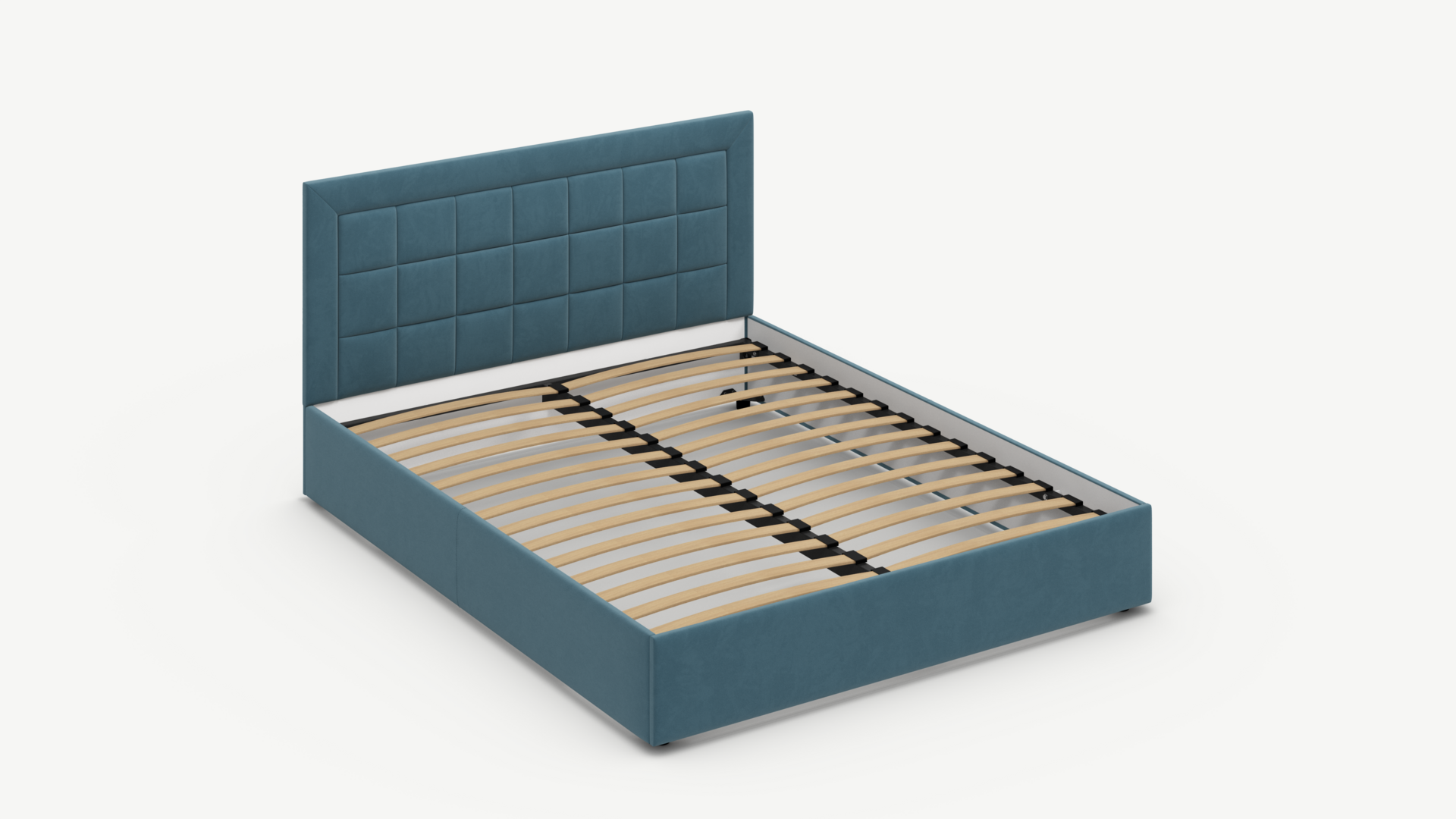 Рама, изголовье и царги надежно крепятся между собой, обеспечивая прочность и устойчивость кровати.