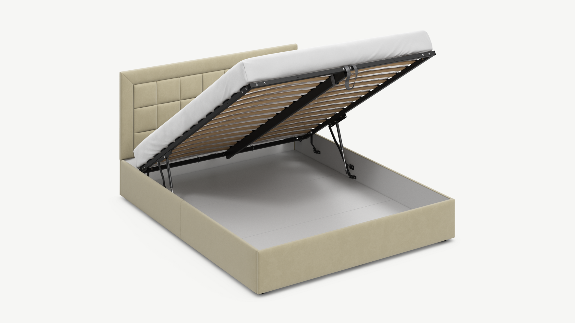 • Скрытая под основанием вместительная емкость без внутренних перегородок позволяет использовать всю площадь подкроватного пространства для хранения вещей.