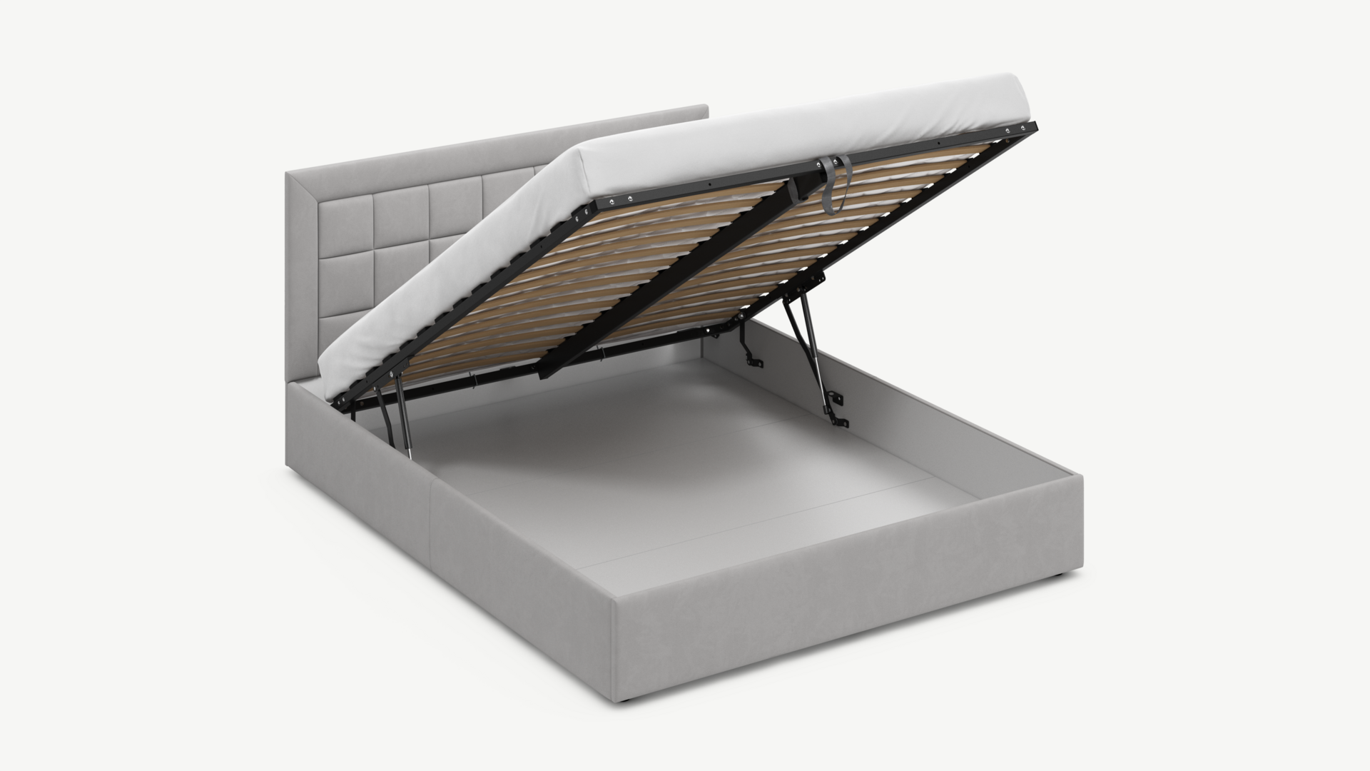 Регулируемый подъемный механизм с газовыми амортизаторами позволяет плавно и бесшумно поднимать и опускать спальное место.