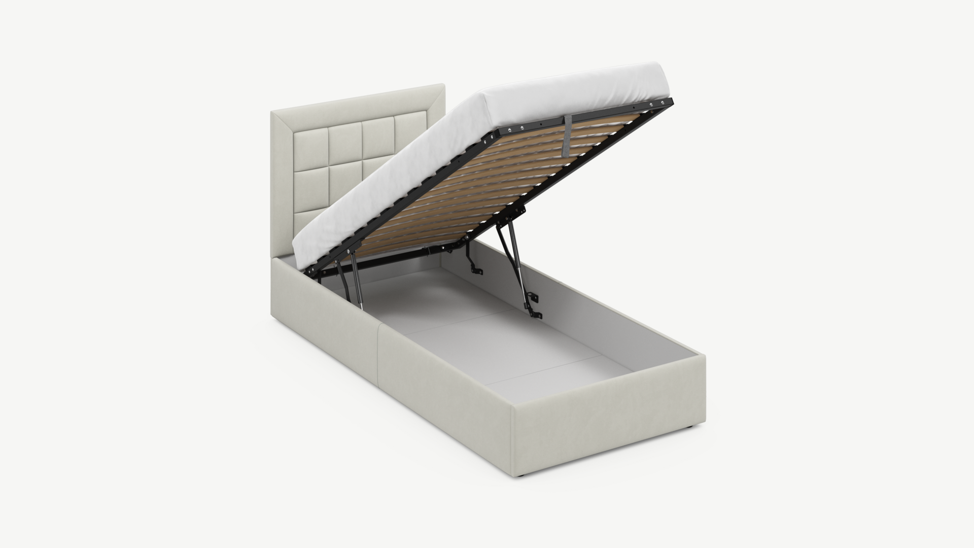 Вместительная емкость под кроватью без внутренних перегородок позволяет использовать для хранения вещей 100% пространства.