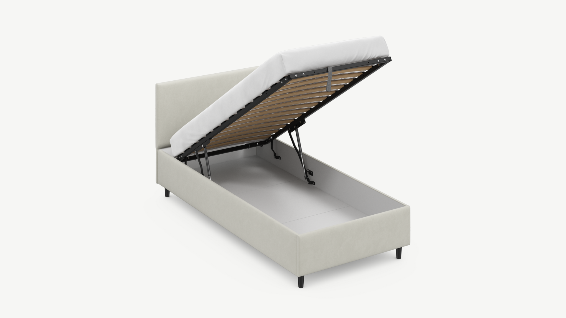 Регулируемый подъемный механизм с газовыми амортизаторами позволяет плавно и бесшумно поднимать и опускать спальное место.