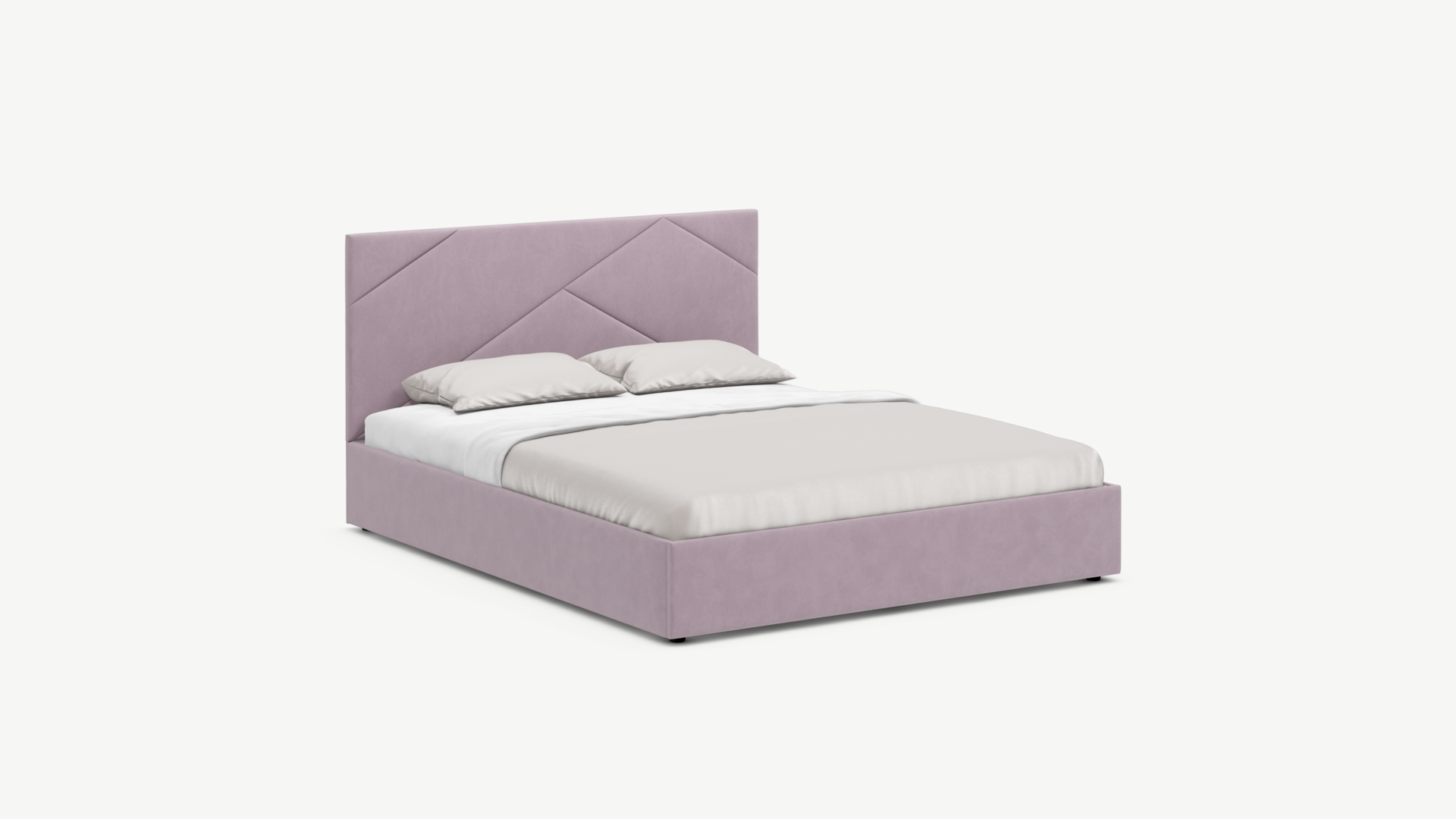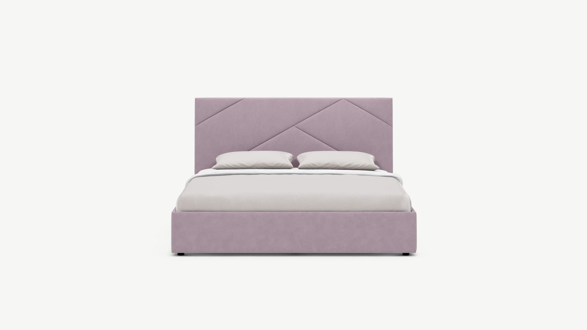 MOON FAMILY 1257 привлекает внимание оригинальным исполнением: широкие полосы ткани эффектно пересекают периметр изголовья, создавая на нем графический орнамент. Лаконичные формы объемных царг создают единый гармоничный образ и фокусируют внимание на центральном текстурном элементе кровати.