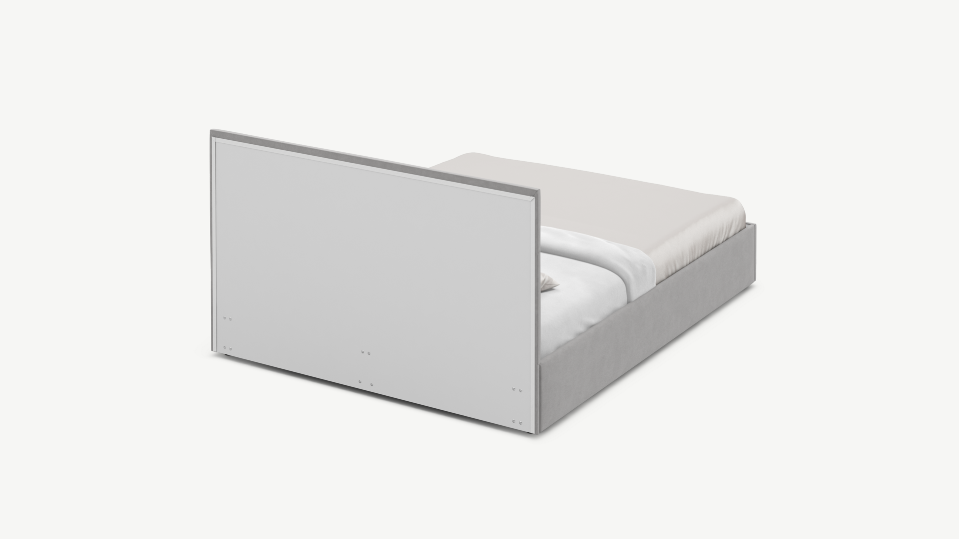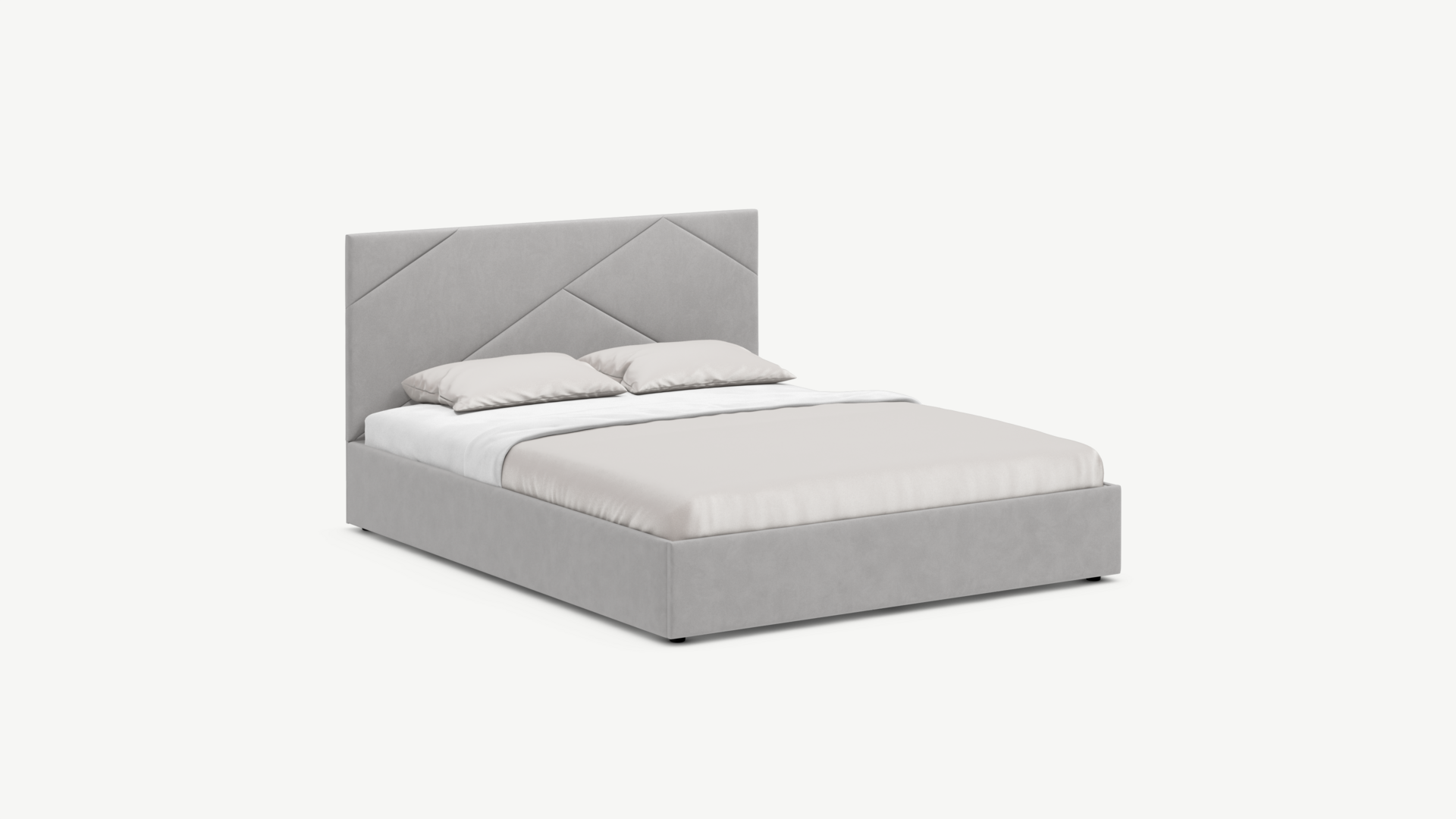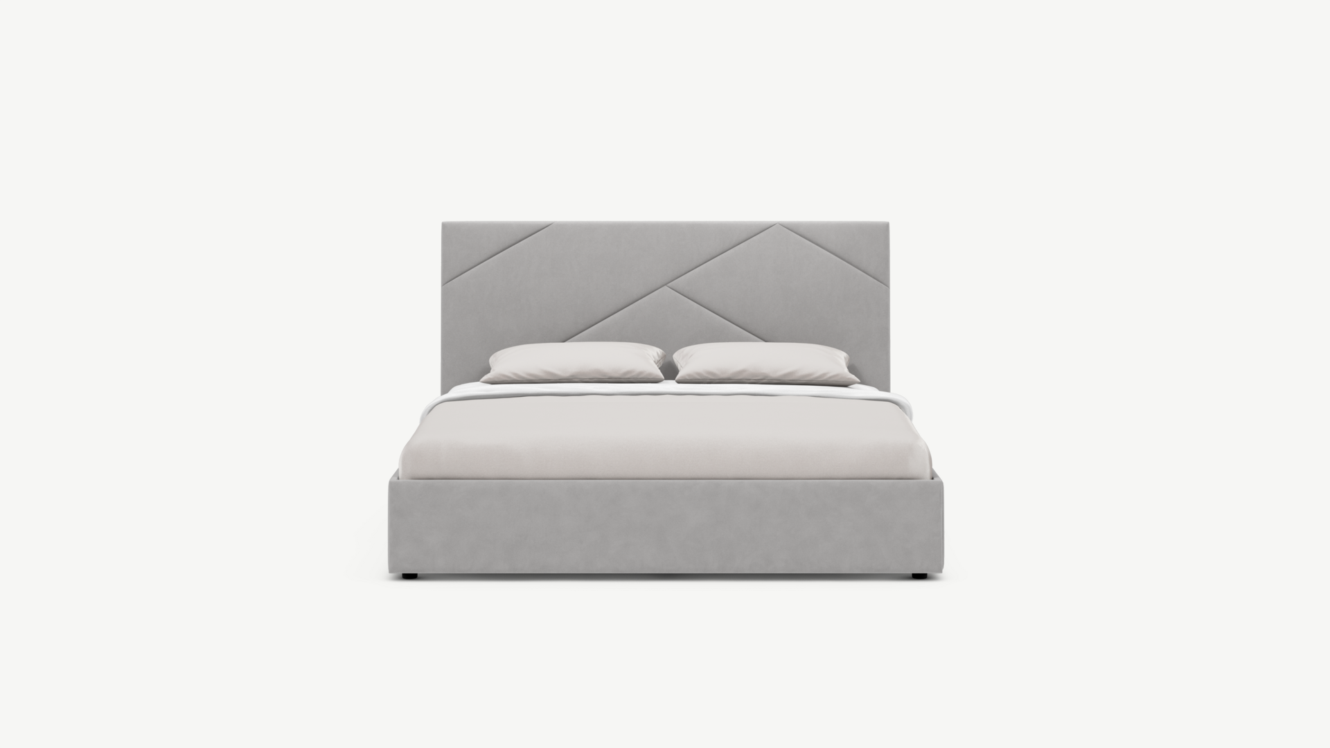 MOON FAMILY 1257 привлекает внимание оригинальным исполнением: широкие полосы ткани эффектно пересекают периметр изголовья, создавая на нем графический орнамент. Лаконичные формы объемных царг создают единый гармоничный образ и фокусируют внимание на центральном текстурном элементе кровати.