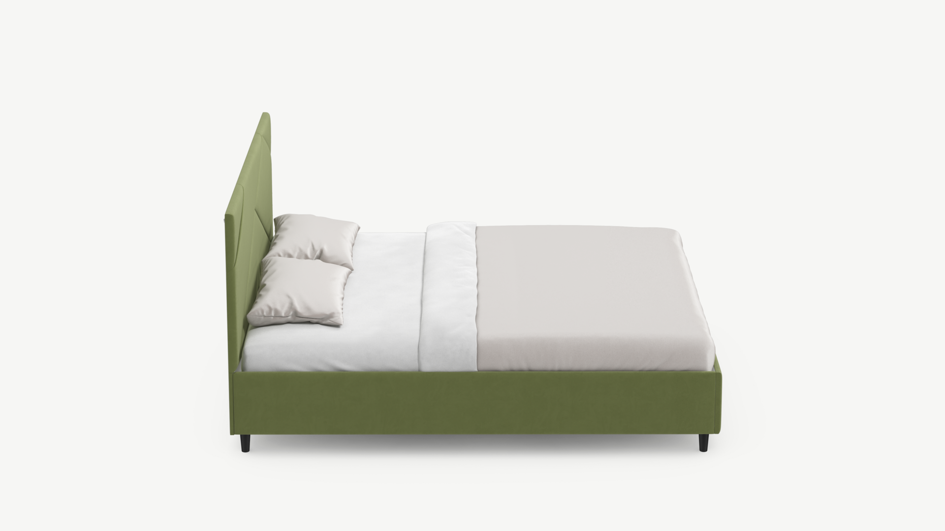 MOON FAMILY 1257 привлекает внимание оригинальным исполнением: широкие полосы ткани эффектно пересекают периметр изголовья, создавая на нем графический орнамент. Лаконичные формы объемных царг создают единый гармоничный образ и фокусируют внимание на центральном текстурном элементе кровати.