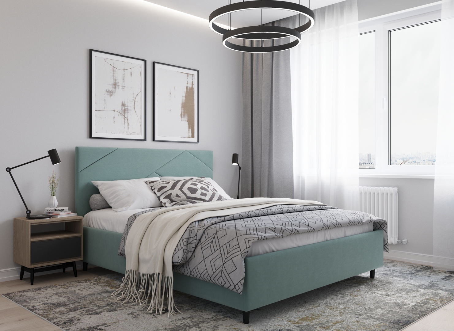 MOON FAMILY 1257 привлекает внимание оригинальным исполнением: широкие полосы ткани эффектно пересекают периметр изголовья, создавая на нем графический орнамент. Лаконичные формы объемных царг создают единый гармоничный образ и фокусируют внимание на центральном текстурном элементе кровати.