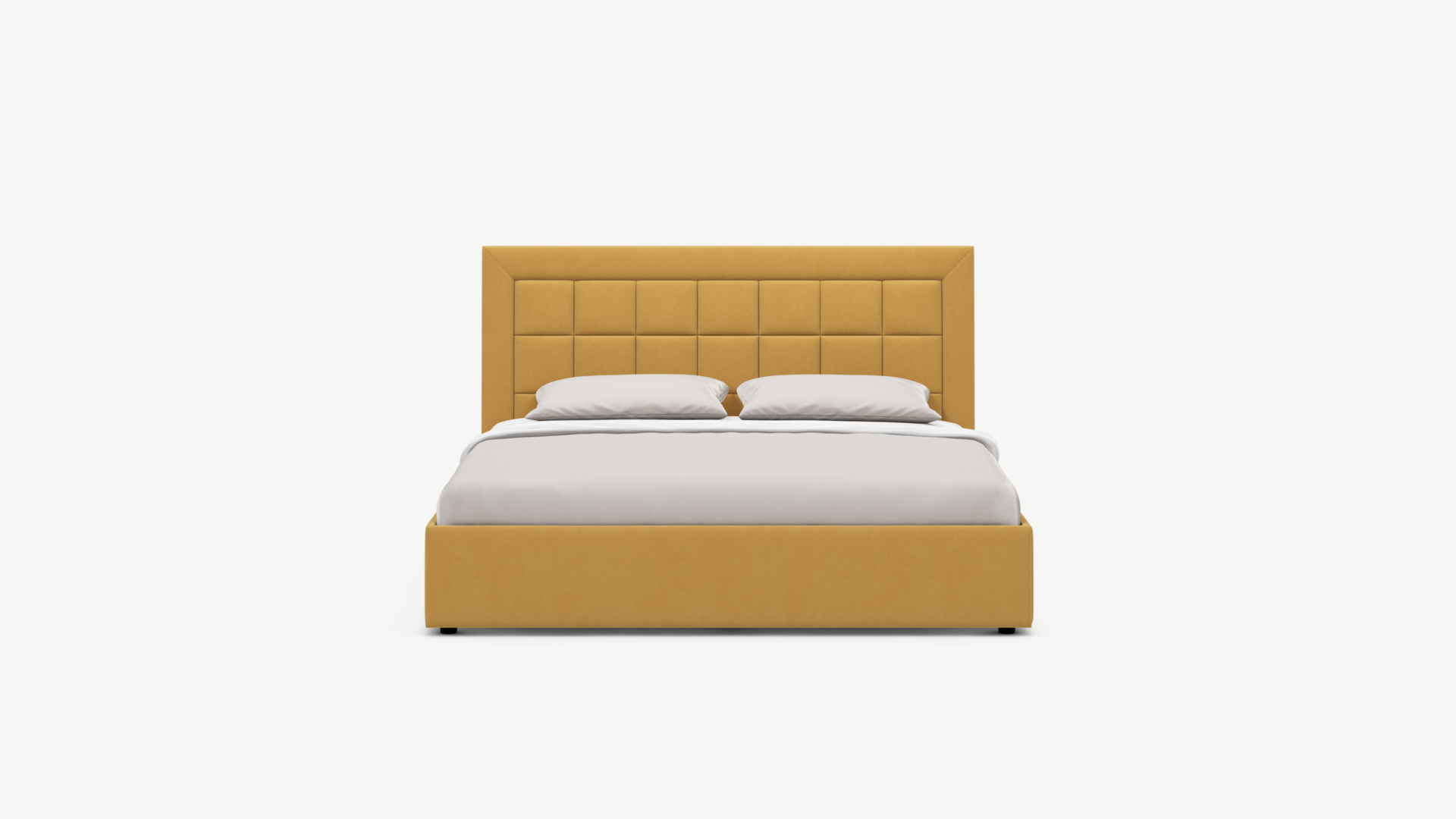 Стежка помещена в центр изголовья и обрамлена, словно картина. Объемные царги становятся гармоничным дополнением образа и завершают цельную фигуру кровати.
