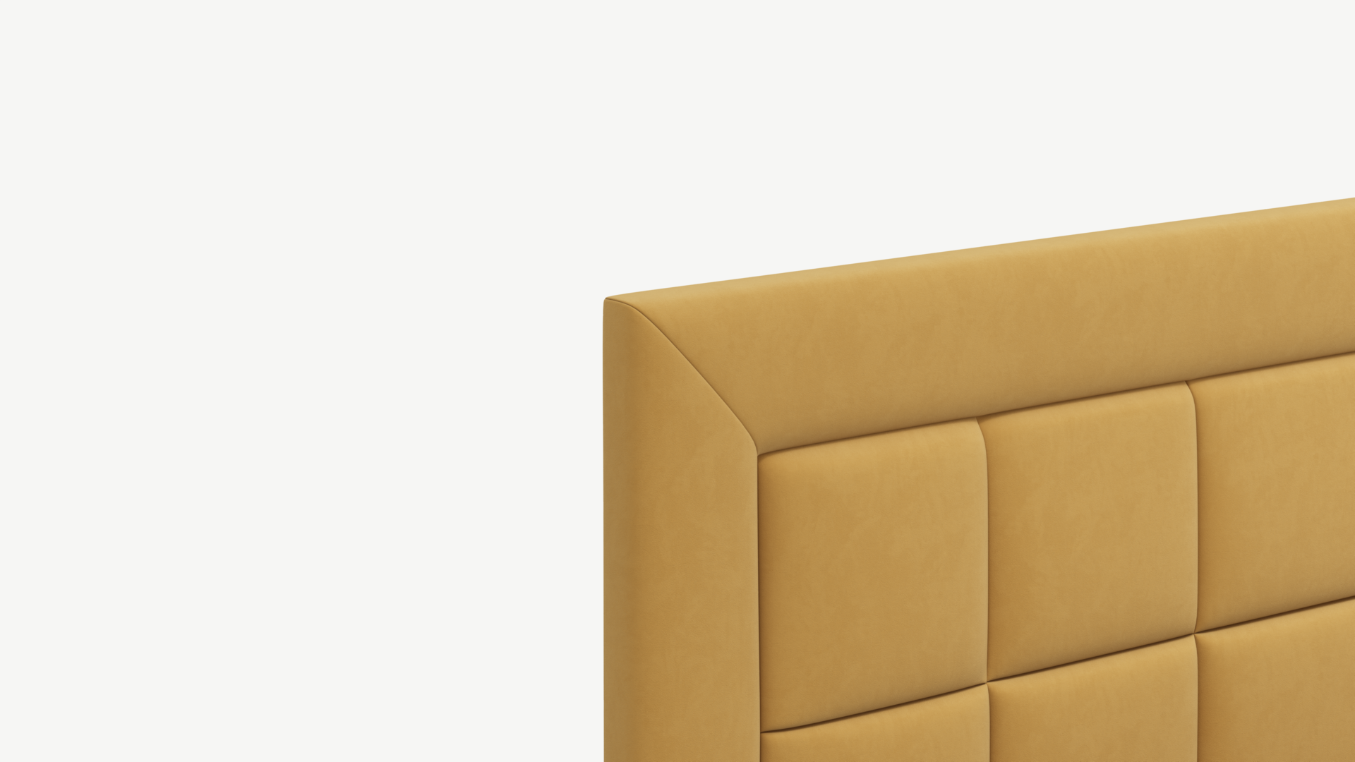 Изголовье декорировано рельефным рисунком стежки в крупный квадрат, получившим особую фактуру за счет глубины шва.