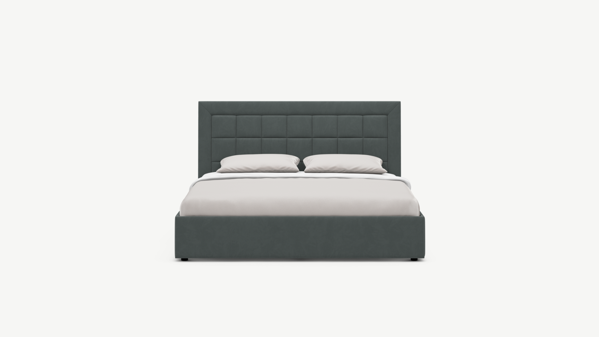 Стежка помещена в центр изголовья и обрамлена, словно картина. Объемные царги становятся гармоничным дополнением образа и завершают цельную фигуру кровати.