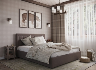 Стежка помещена в центр изголовья и обрамлена, словно картина. Объемные царги становятся гармоничным дополнением образа и завершают цельную фигуру кровати.