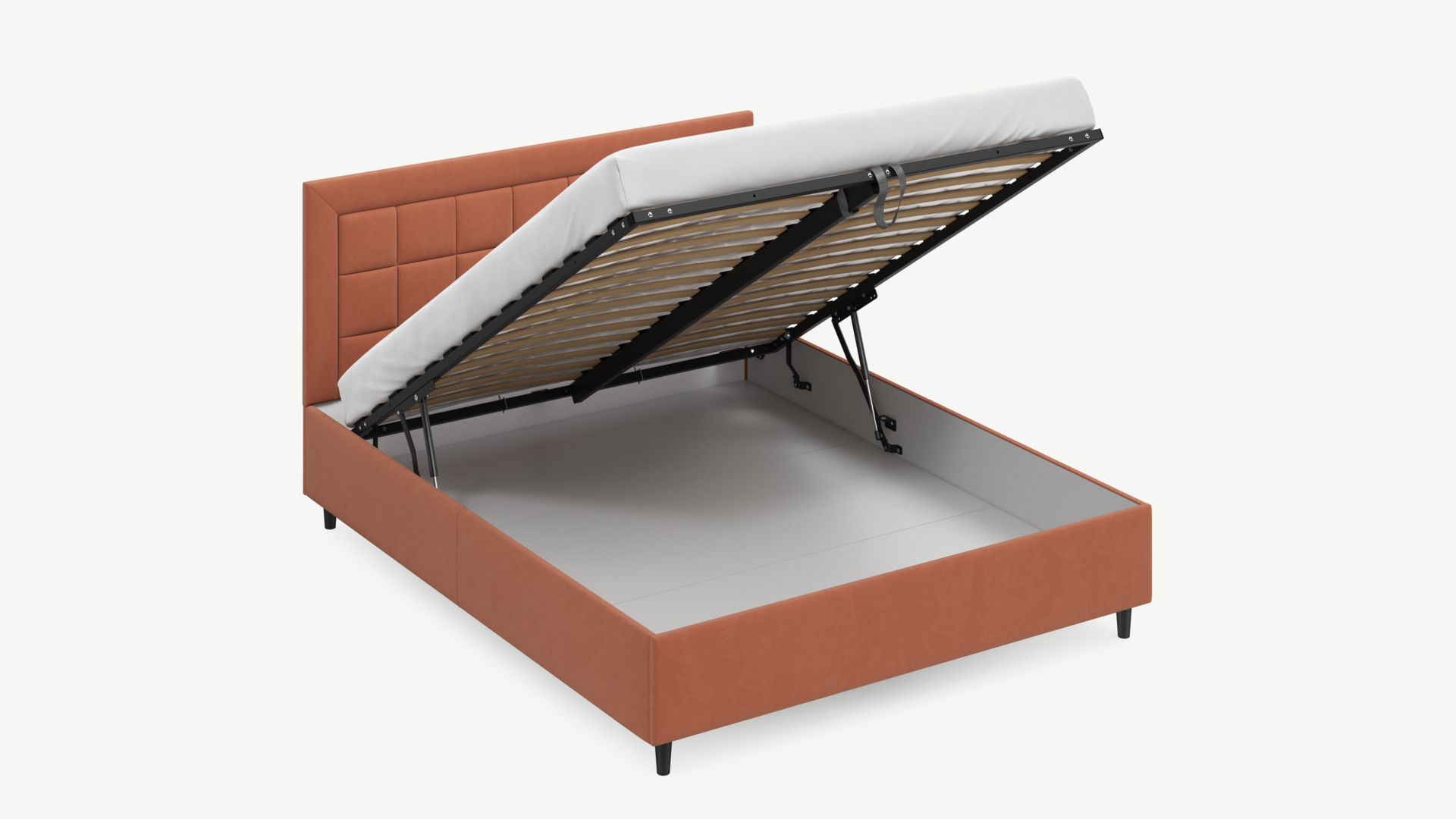 - Скрытая под основанием вместительная емкость без внутренних перегородок позволяет использовать всю площадь подкроватного пространства для хранения вещей.
