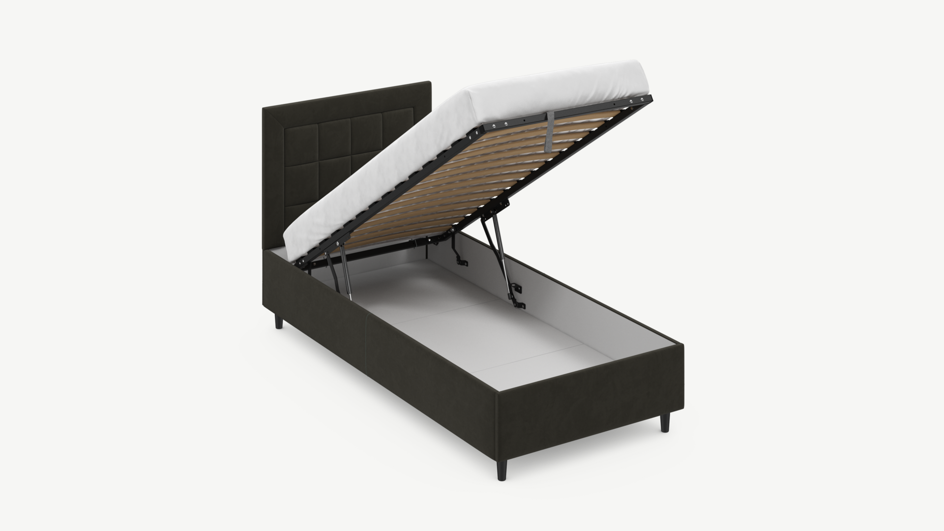 - Скрытая под основанием вместительная емкость без внутренних перегородок позволяет использовать всю площадь подкроватного пространства для хранения вещей.