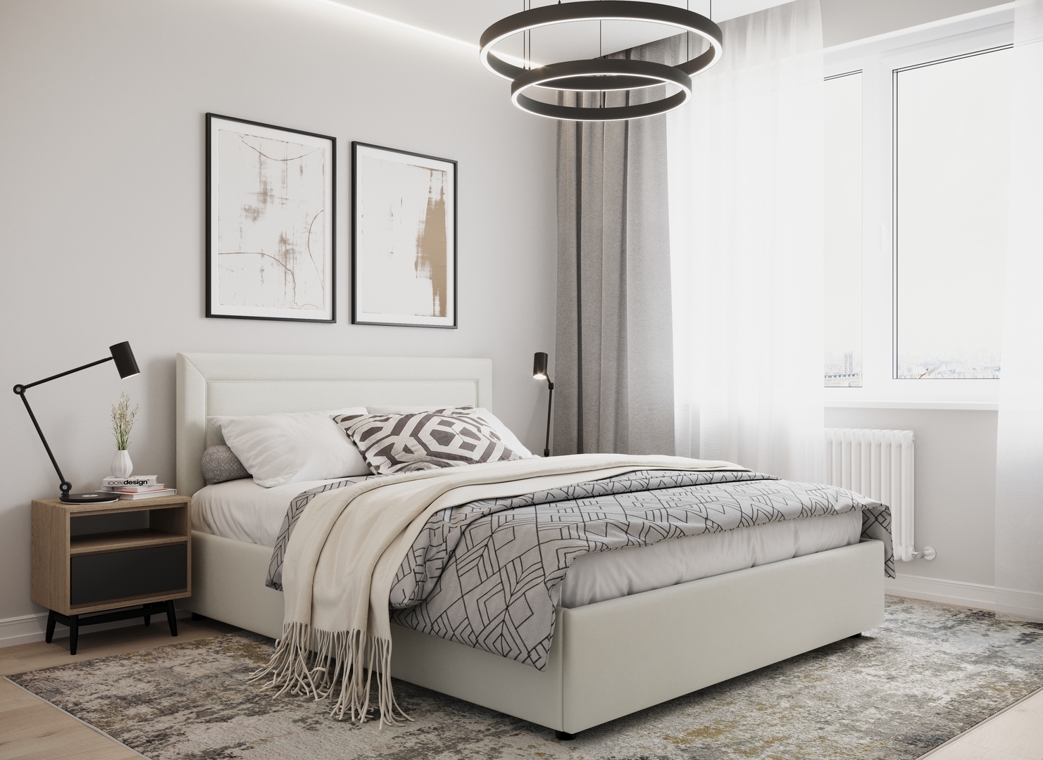 Создать гармоничный интерьер и завершить образ спальни помогут дополнительные аксессуары, например: тумбы, банкетки, подушки.