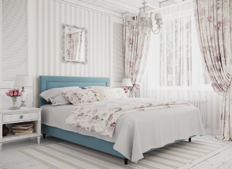 Фактура обивочного материала подбирается дизайнерами с учетом технологических и стилевых особенностей кровати.
