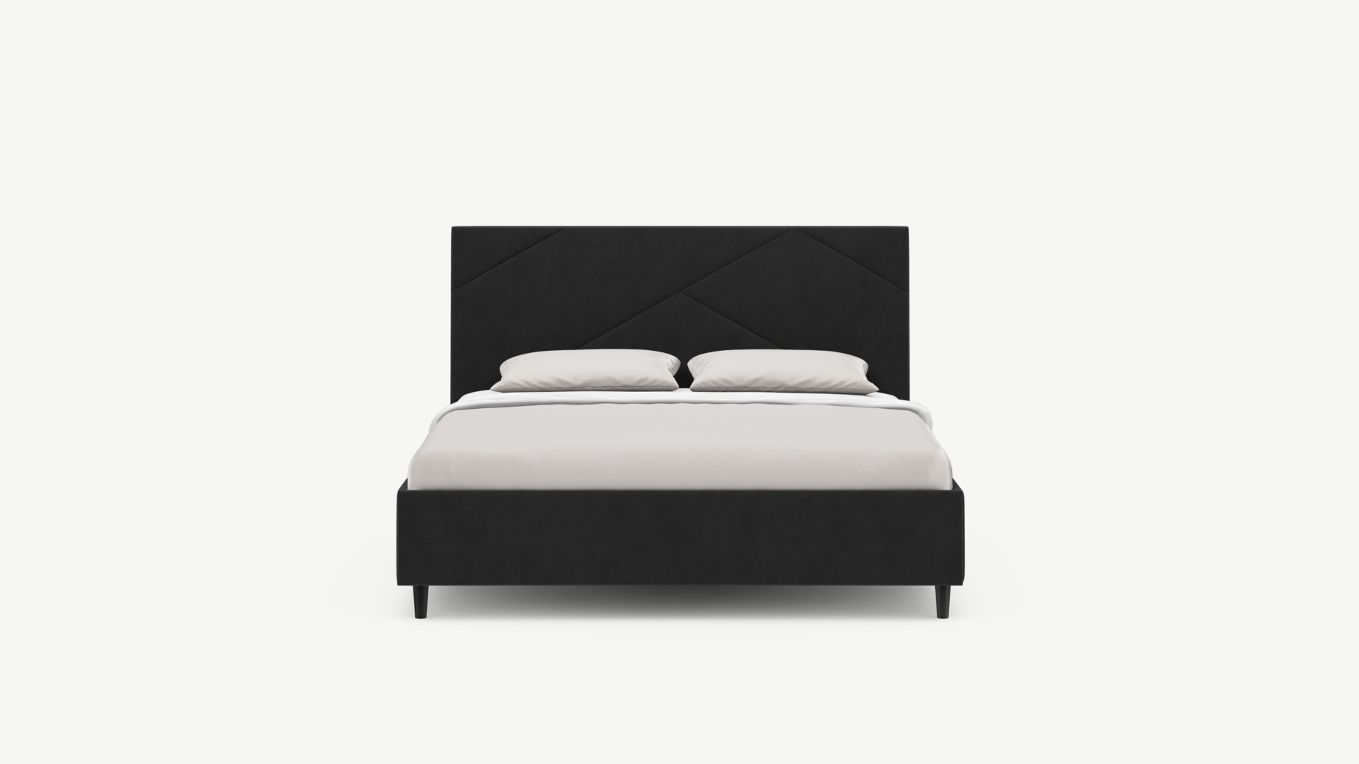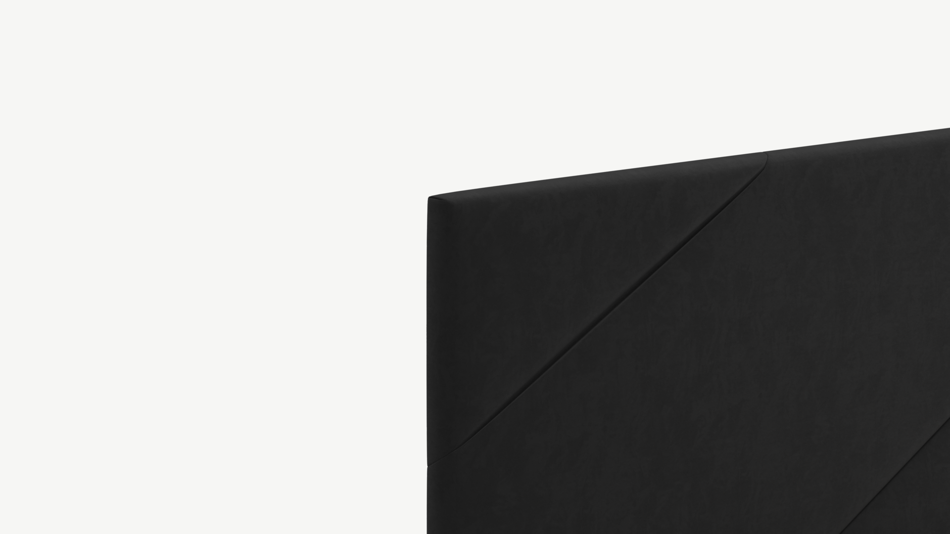 MOON FAMILY 1257 привлекает внимание оригинальным исполнением: широкие полосы ткани эффектно пересекают периметр изголовья, создавая на нем графический орнамент. Лаконичные формы объемных царг создают единый гармоничный образ и фокусируют внимание на центральном текстурном элементе кровати.