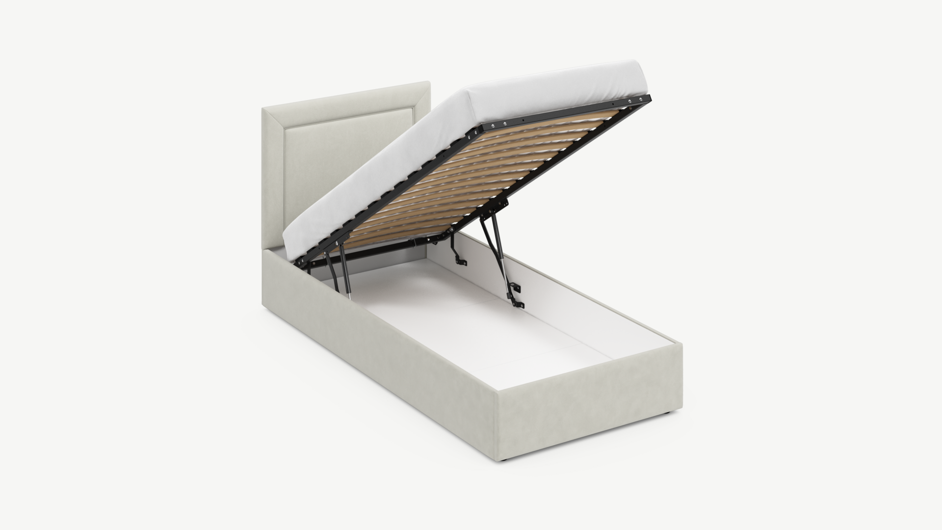 Вместительная емкость под кроватью без внутренних перегородок позволяет использовать для хранения вещей 100% пространства.