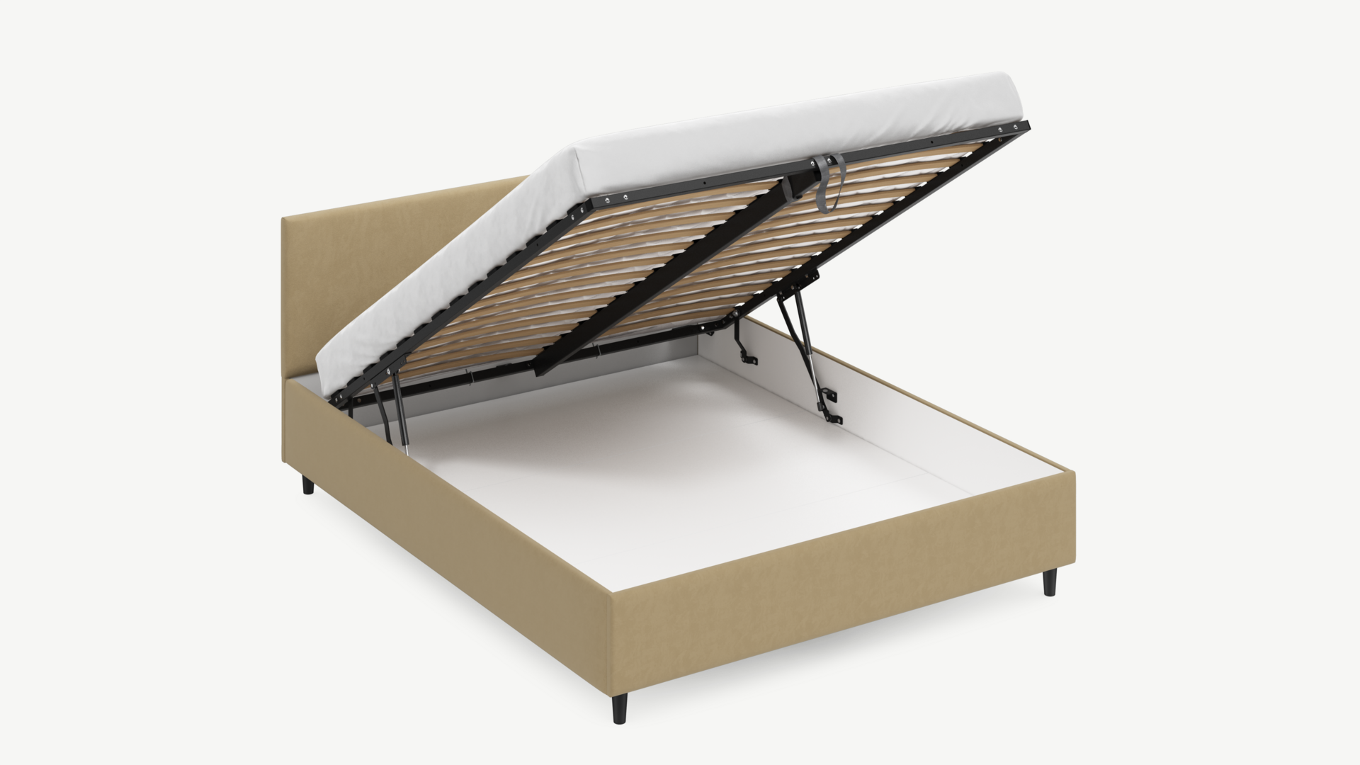 - Скрытая под основанием вместительная емкость без внутренних перегородок позволяет использовать всю площадь подкроватного пространства для хранения вещей.