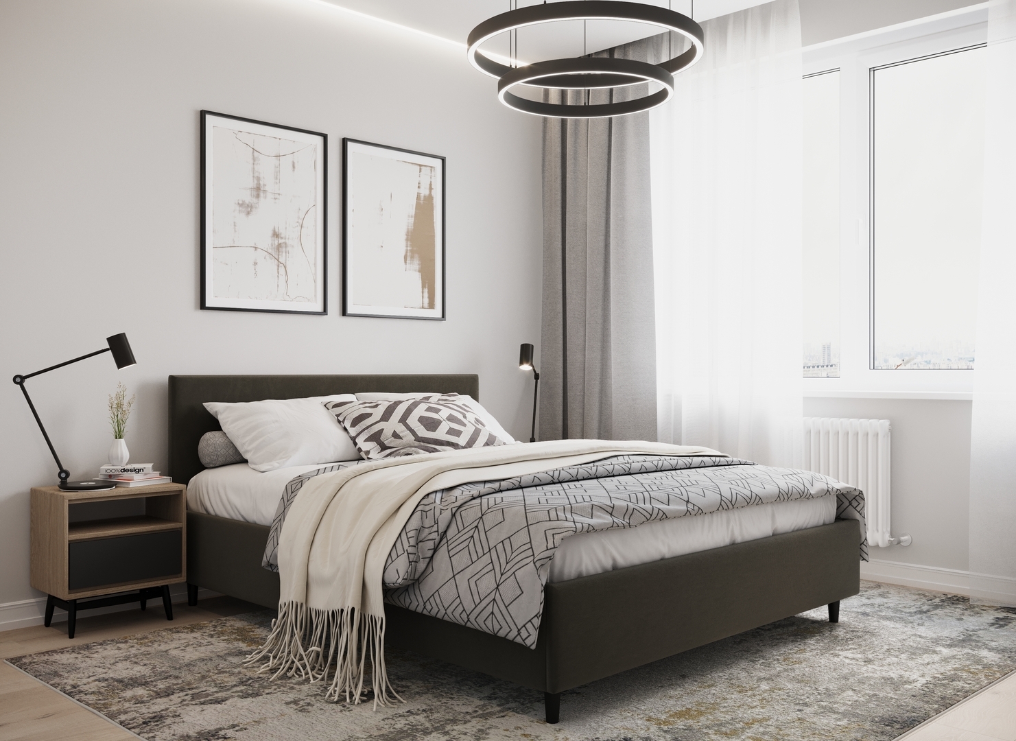 Создать гармоничный интерьер и завершить образ спальни помогут дополнительные аксессуары, например: тумбы, банкетки, подушки.